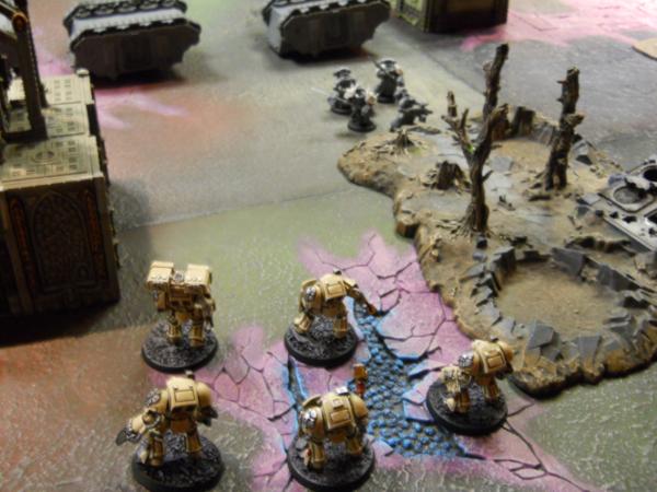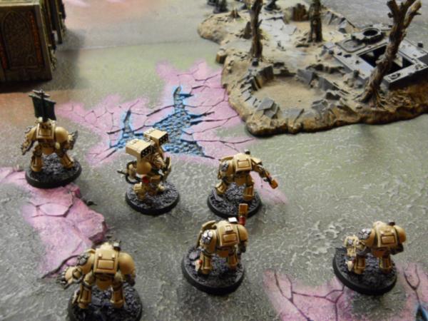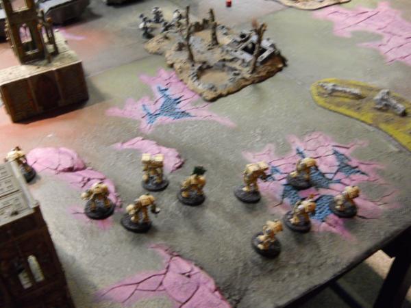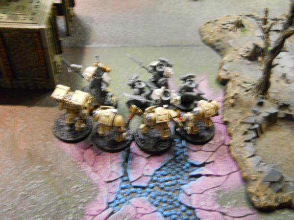 Ryans untouched purifier squad that finished off Belial's unit charges the termis on the hill