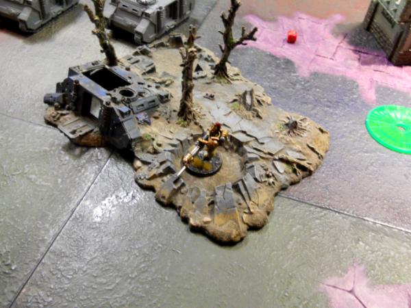 So not a whole lot to do here, I move my termies on the right forward (WHY??!?!?!?!!!) and shoot at the purifers killing one. The lonely lightning claws termie moves towards the inquisitor combat to try and lend a hand.