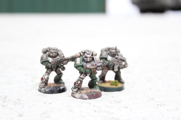 I finally picked a brush back up yesterday for the first time in almost year, and I'm excited about having time for the hobby again. I had been working on a space marine crusade army of sorts (brief fluff if you like in the spoiler below) and now I want to improve their color scheme and quality in general.