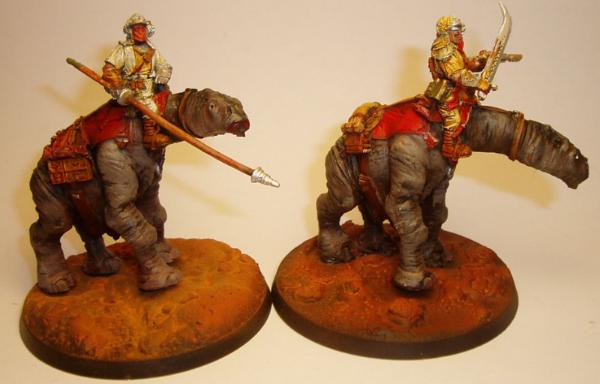 I am converting three I.G. Tallarn rough riders/cavalry into I.G./Heretic scout sentinels due to the base size and profile being the same as a sentinel rather than a rough rider. They are marketed as Imperial Guard cavalry by Forge World. I want to play my army in tournament some day but they are much larger than the DKOK rough riders in my army.
