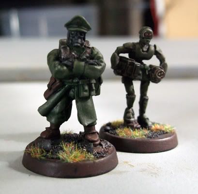 Also rather like the helmets and gas masks...gives the army a menacing look along with their drab paint job. Very cool stuff I'd love to see something like this on the table.
