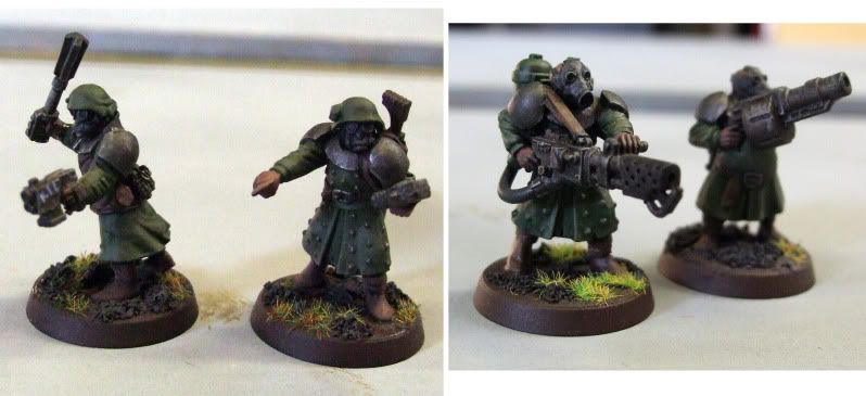 The IG arms are a little big for the bret bodies. The painting could use some highlighting and shading. Nice start!