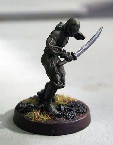 The only constructive criticism I could add would be to paint some leather colors onto the holsters and pouches etc, just to break up the monotony. Leather type colors would compliment your overall theme fairly well, I think.