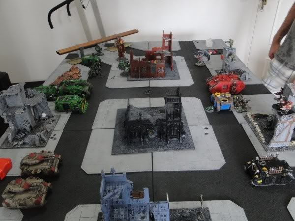 40K campaign, a friend and I decided to set up a larger-scale game to bring the whole thing to a proper close. So we got 2500 points each, chaos vs. order, some nice terrain, all painted troops and went for broke.