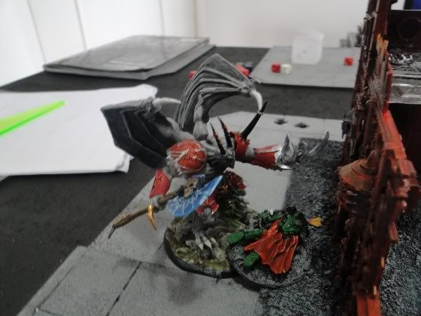 The whole left flank f the army converges on the Daemon Prince, with the scouts in the