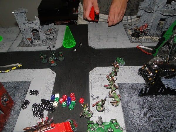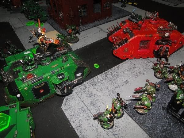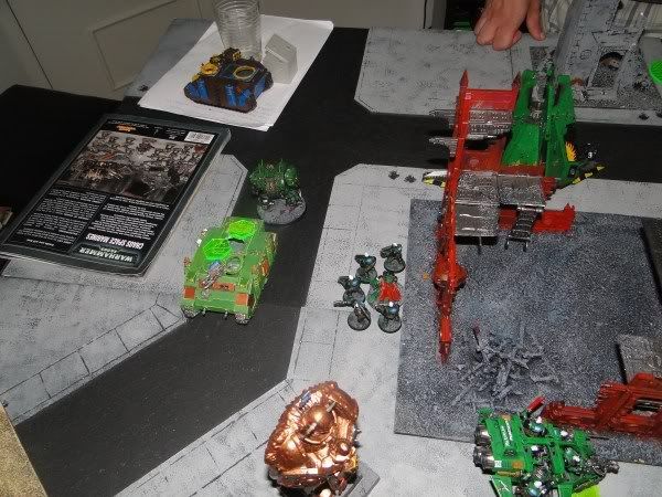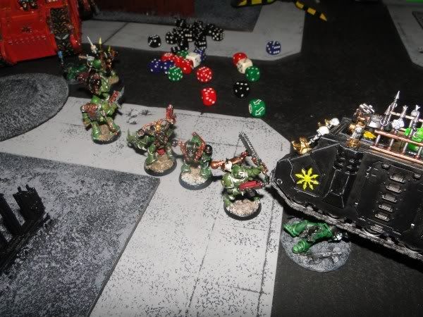 tac squad bailed home. A rhino and a few straglgers shoot at Abaddon, with no effect.