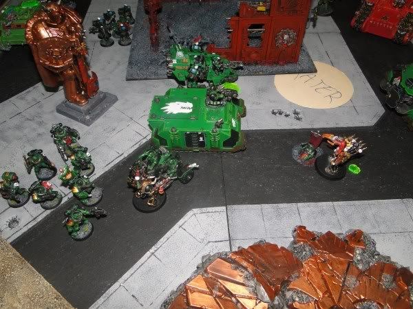 tl-bolter on the tactical there and kill one. Attack bikes and chaos terminators stay locked in combat, with a bike taking a wound and dying, as well as a traitor termi.