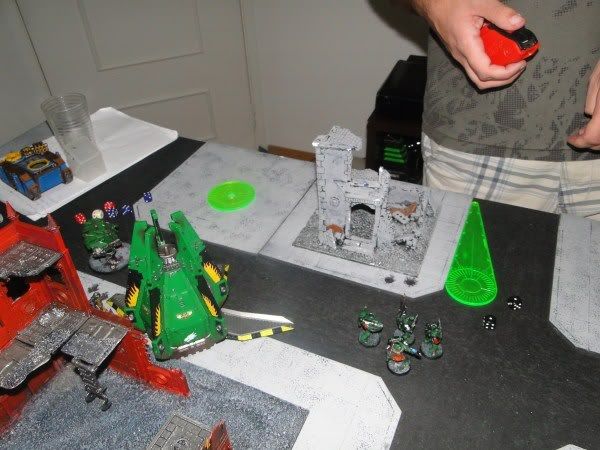 LSS, a rhino disembarking 10 tacticals and a dread all walking up. Surviving predator stays put, and the Vindicator makes a right and aims for my
