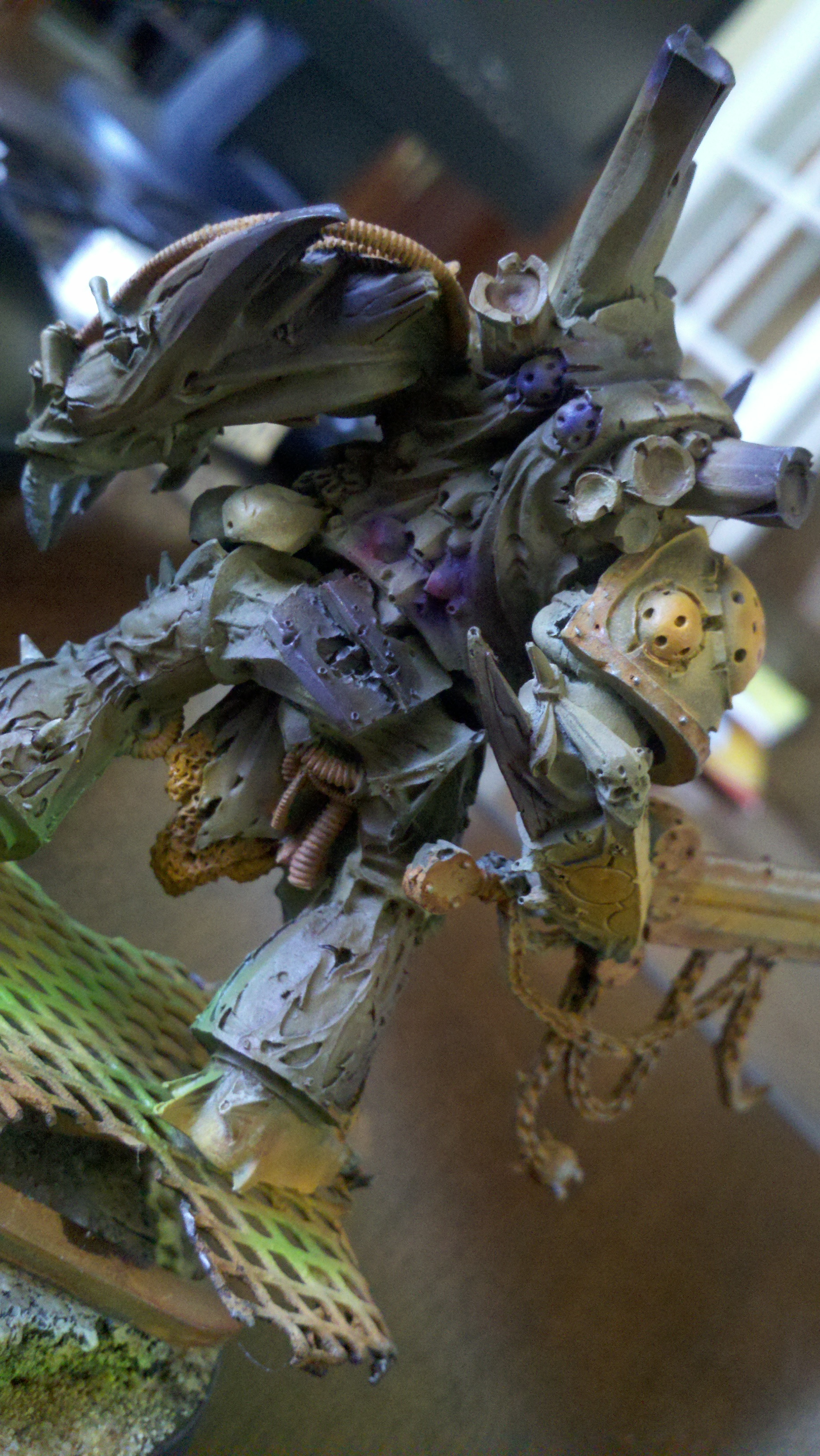 Also it should be noted all of these pictures are coming from a phone, so I have little control in adjusting the aperture. He tends to get far more washed out in the pictures than he actually is. And finally I didn't want this Daemon prince to be run of the mill, often I see people who have gone with the olive drag base, plague grey dry brush, and a dark color scheme. I feel that people often forget that pestilence comes in many shades. Just because hes Nurgle doesn't mean he can't be fabulous. I wanted to thank all you guys for the feedback.