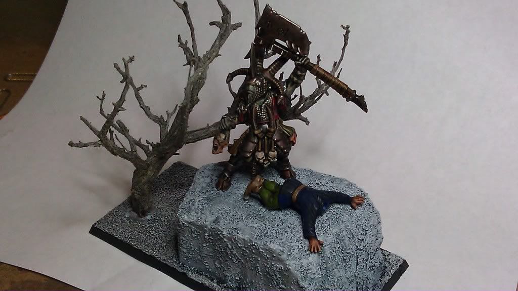 Not my blog but a good description on what it is, I believe the bloodletters or something similar in design was even posted on GWs website within the past year: http://the-tradingpost.blogspot.com/2011/05/unit-fillers.html I personally use this in my unit of 40 bestigor which takes up what would be 8 bestigor, this was done pre snow and blood basing:  Not only does it look cool but when you are looking at those special choices that run $4+ per model it saves some cash.