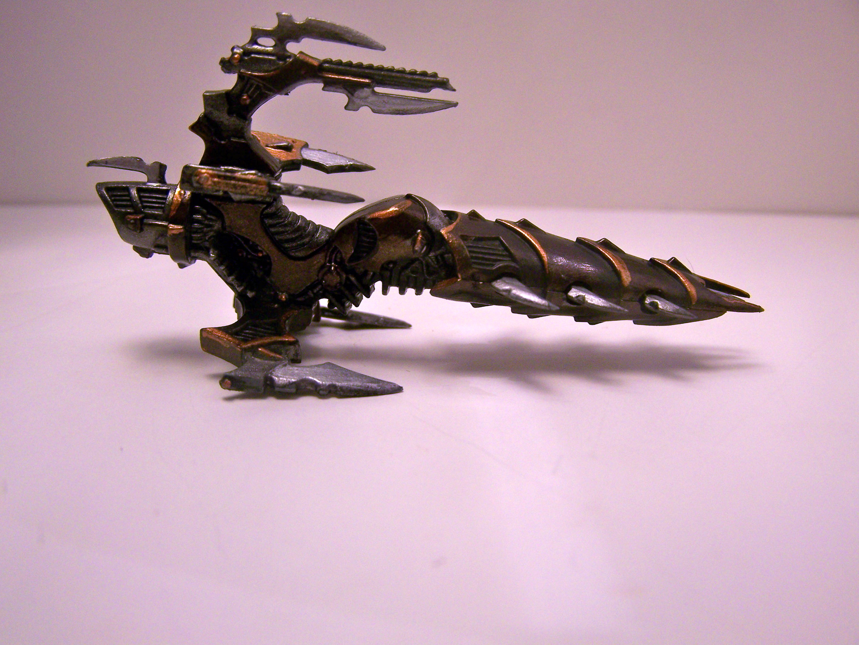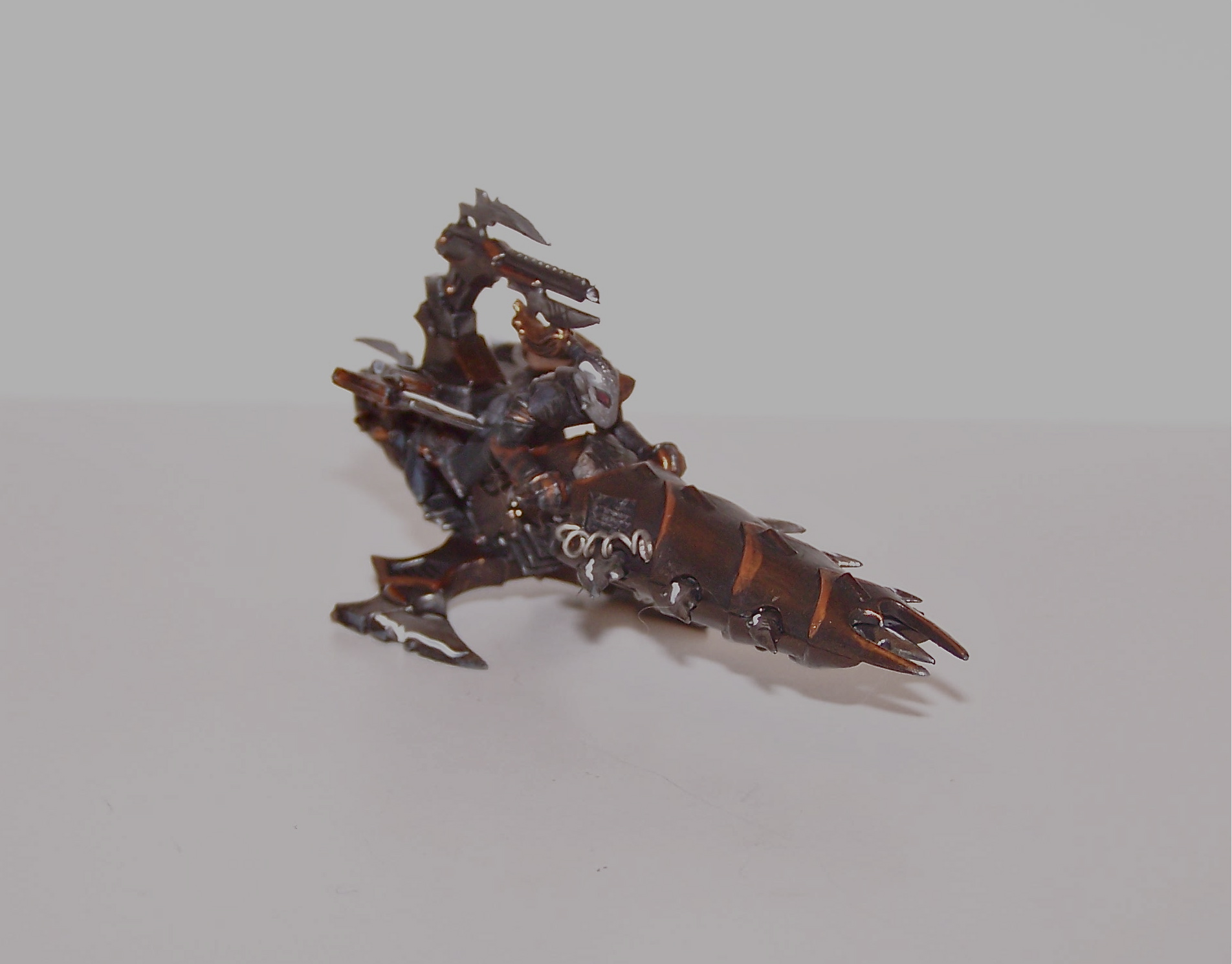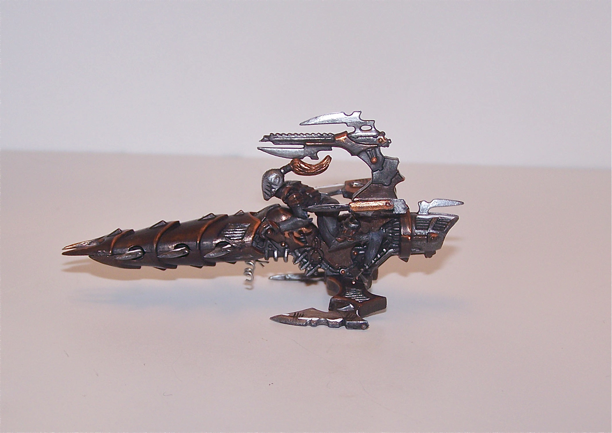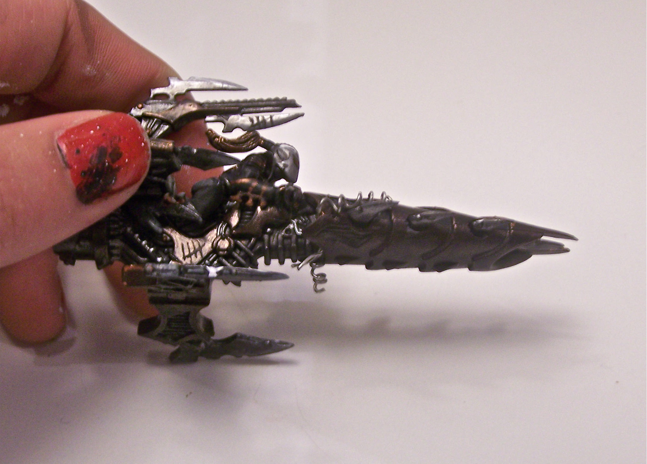 I have a few out of cast DE jetbikes that I didn't paint because I didn't really like the way they looked but hey, I can't be picky. So I had a comment on my DevianArt account about an industrial reaver and I got to thinking about industrializing my vehicles. So this is what I have so far, I'm planning on putting some wires, springs, etc. on the finished model but I haven't gotten that far yet! What do you think about my idea?