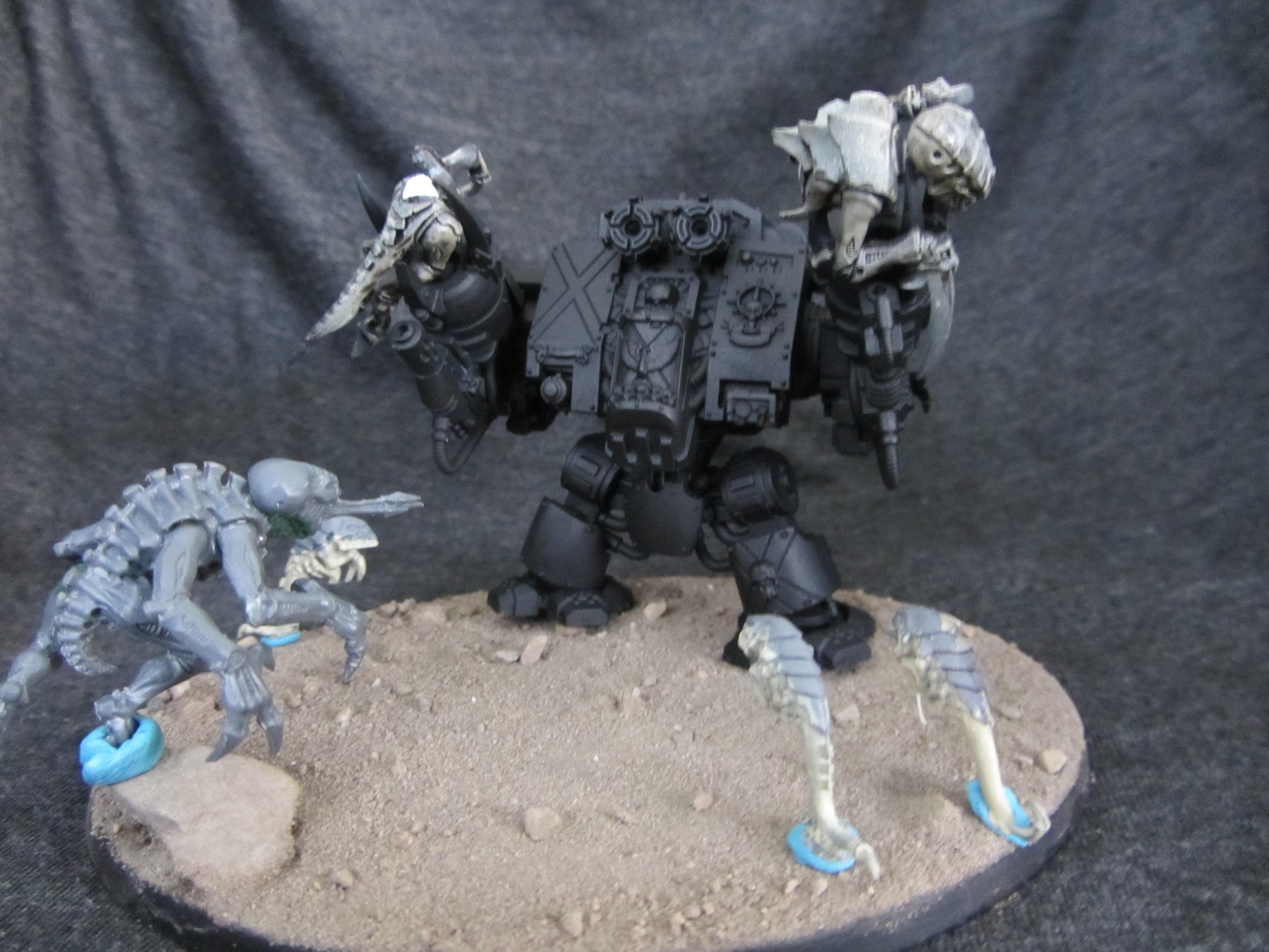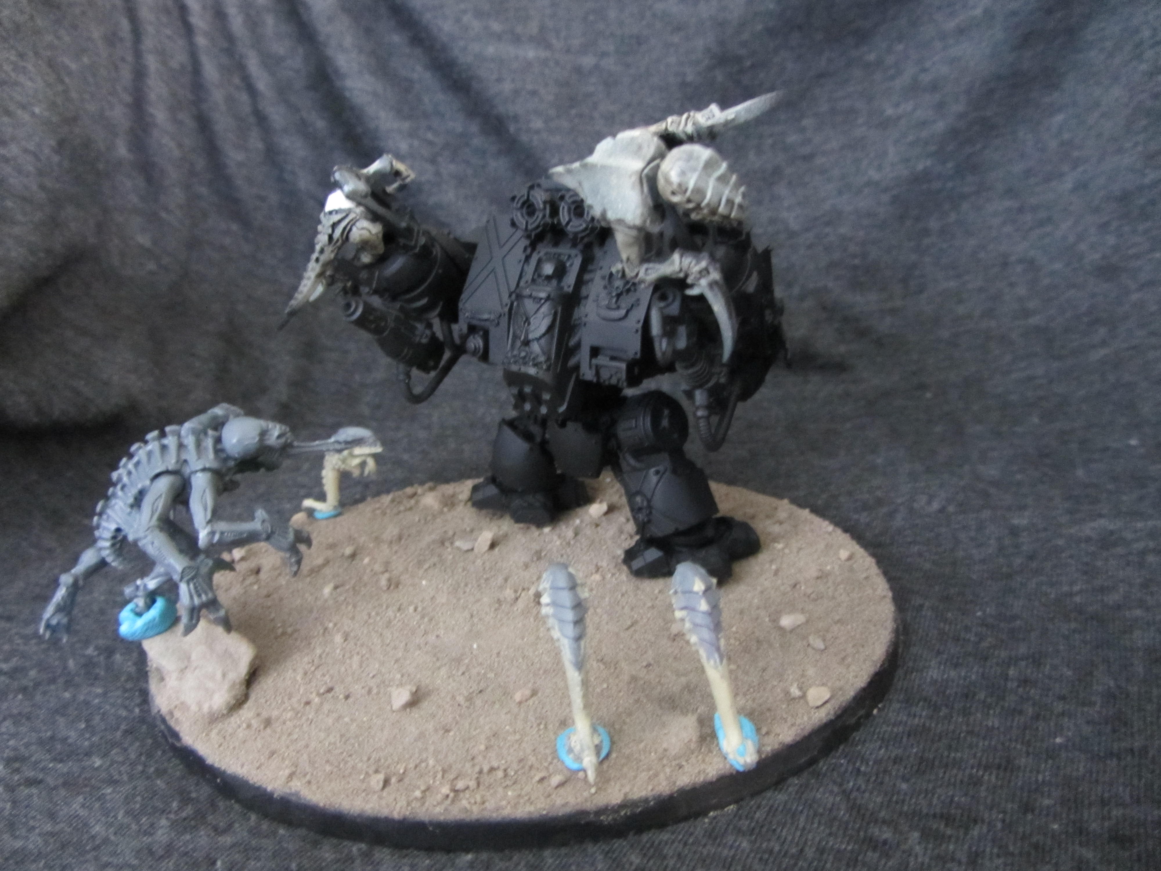 I really like the black and red colours of the dread in contrast to the dusty colours of the Tyrranids. I really hope that you keep it this way.