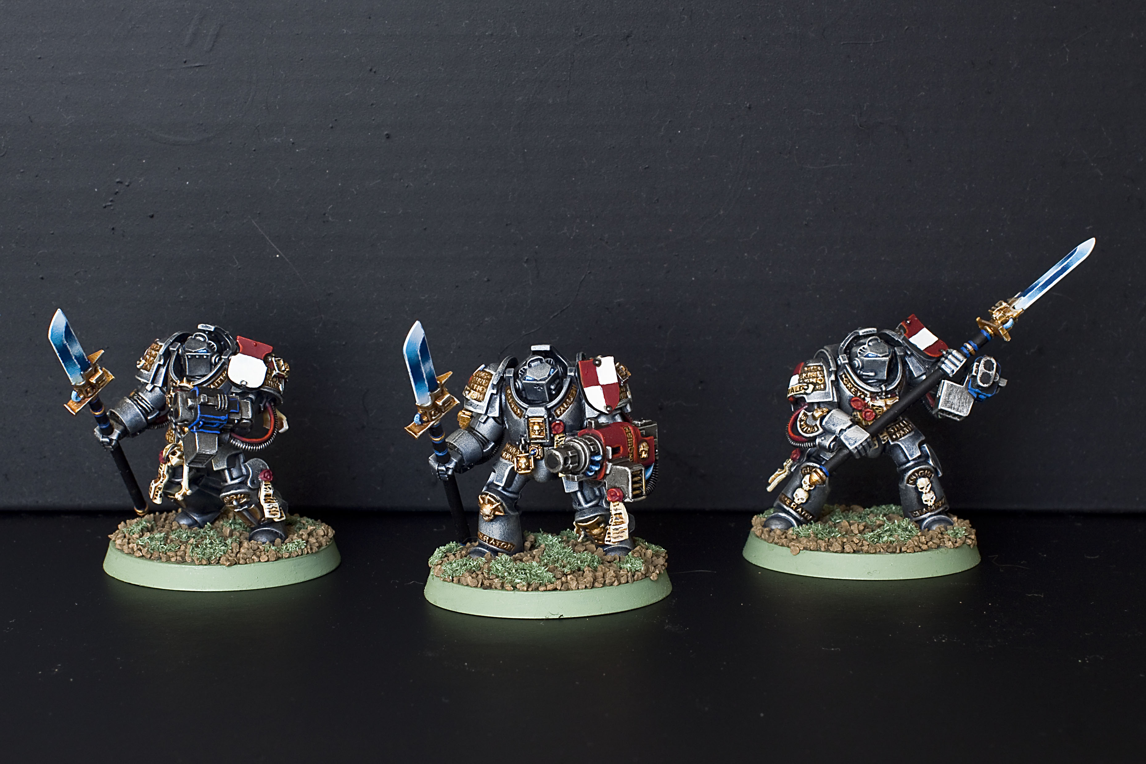 I've distracted myself from Ultras for a while with some GKs. Overall I'm pleased, but I'm just not getting the look I want on the armor. Each of these three had the armor painted using different techniques, but I still haven't hit the nail on the head. Maybe I'm just being a little too critical for a table top army.