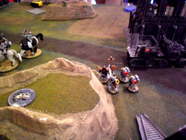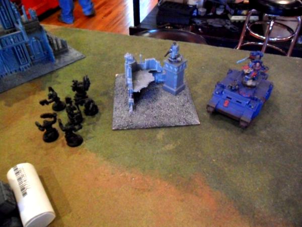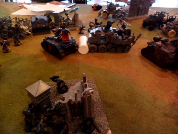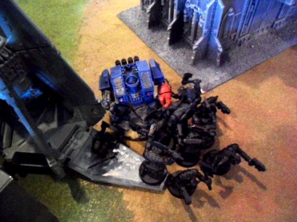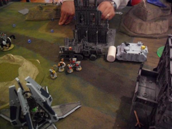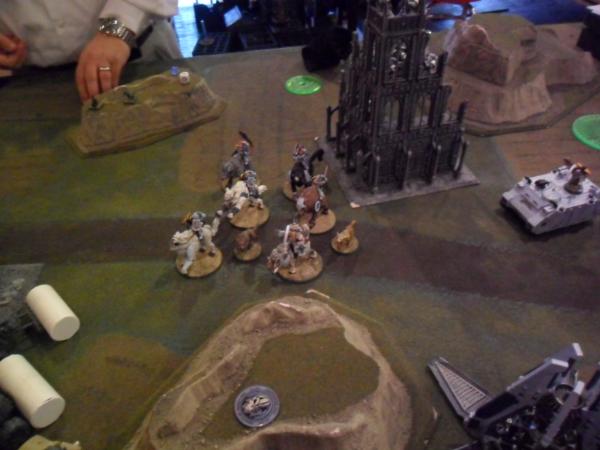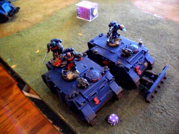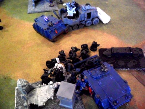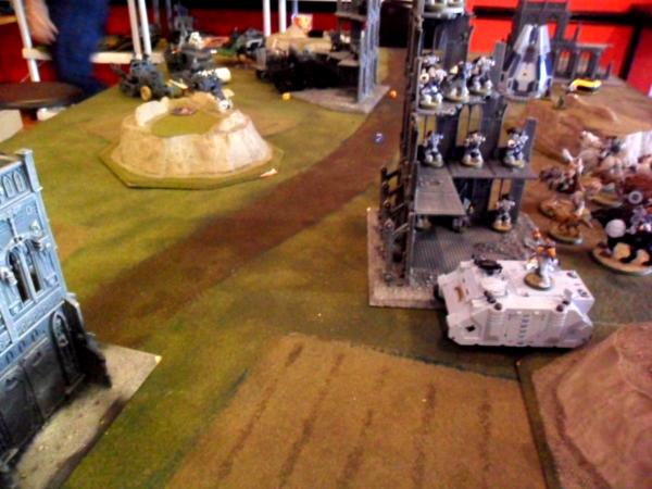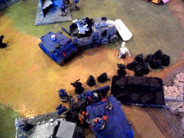AC comes down. He pulls the pedro rhino closer and the sternguard make for the middle objective.