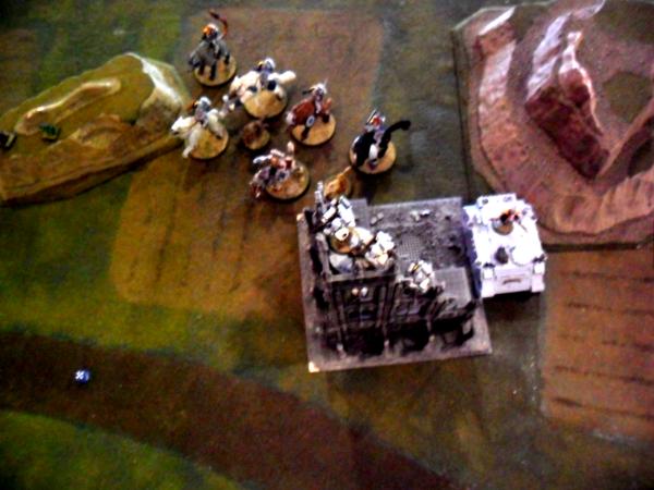 He's boxed me in the corner and with the sniper scouts tries to keep up the momentum by hitting the lootas. Tellion calls Gubz out and gets a wound on him. The scouts sorta miss but do get a loota to go down. Tne