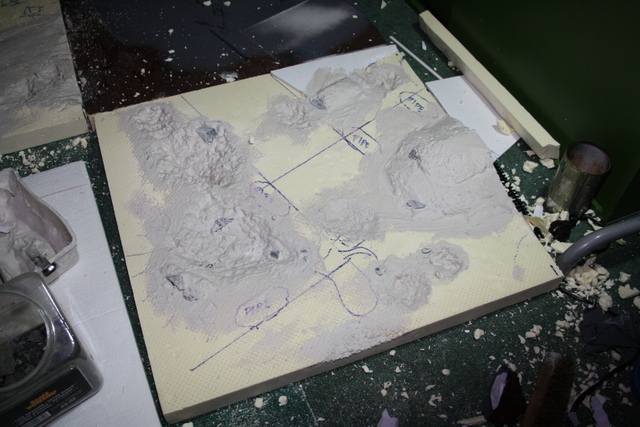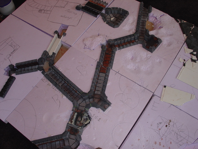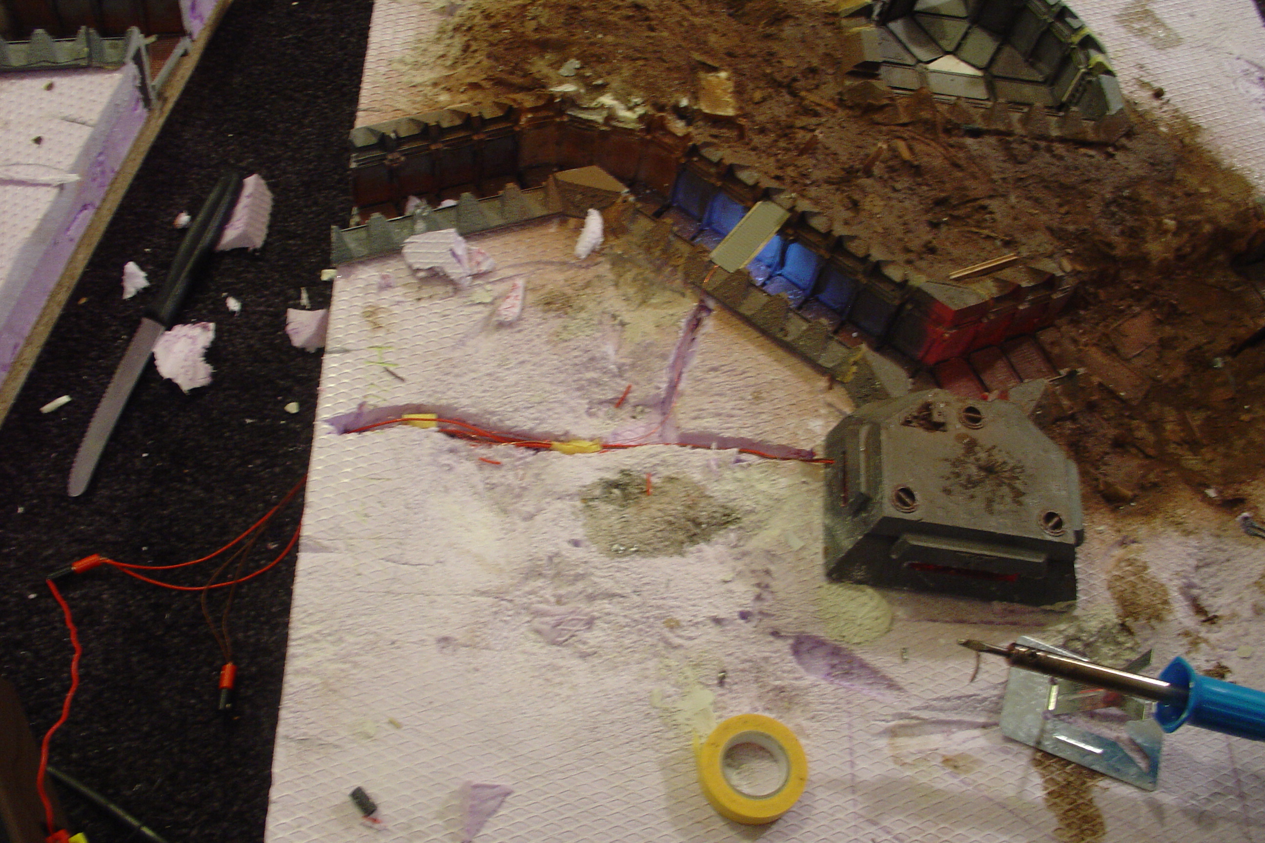 Here you can see how the construction started, cutting the foam board and placing the trench segments