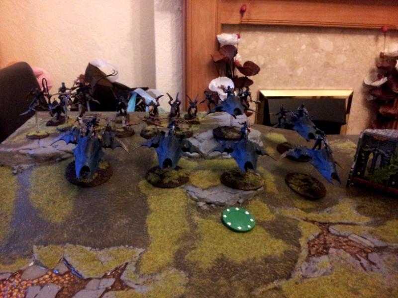 Poddy wins the roll off and deploys first. He splits his army, which is a bit of a surprise as I keep harping on about not to do that. On the left flank he puts five Venoms along with Baron and Beastmasters. On the right flank he puts all the Ravagers and remaining Venoms along with the other Beastmaster unit, which is in the far left corner.
