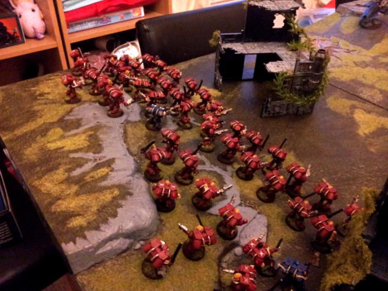 On a different note, I am thinking of switching out the melta bombs and meltaguns on the Honour Guard and giving them plasma guns. My list lacks rate of fire power, which I've needed in two games now. I never really charge the Honour Guard into combat against infantry as I don't want my anti tank unit locked in combat. Plus with the plasma guns gets hot shouldn't be a problem thanks to feel no pain.
