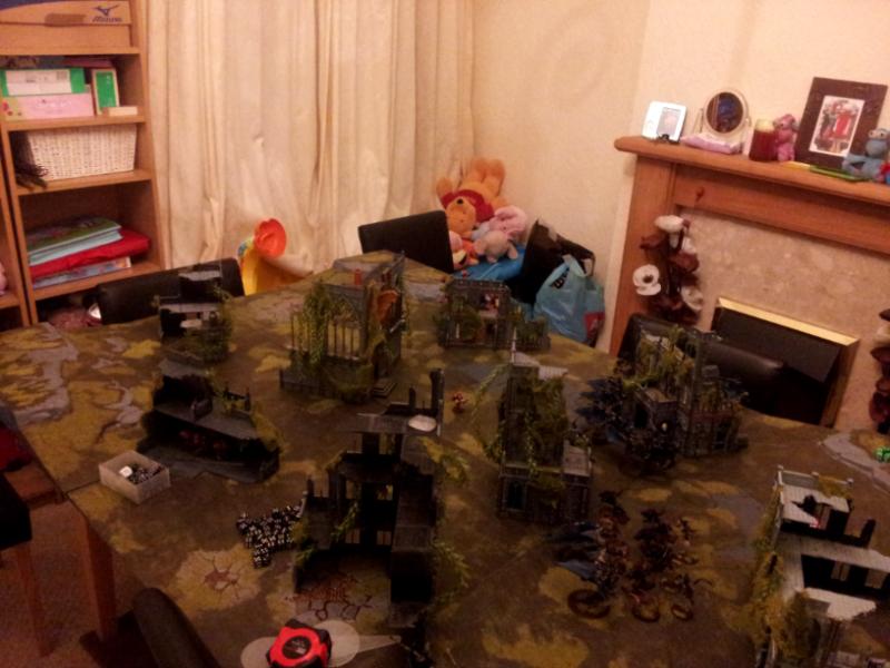 Ok, I expected that loss first turn. I don't like it, though I have to live with it and suck it up. At least Poddy hasn't got to worry about salvos of missiles blowing up his cardboard planes or fragging his little beasties.