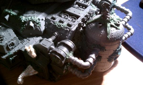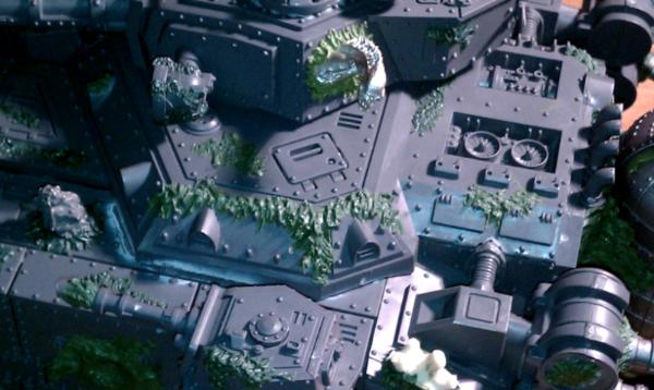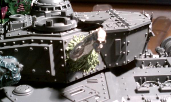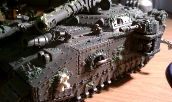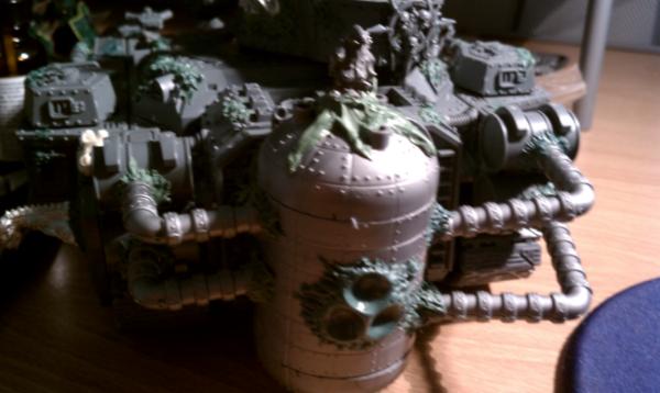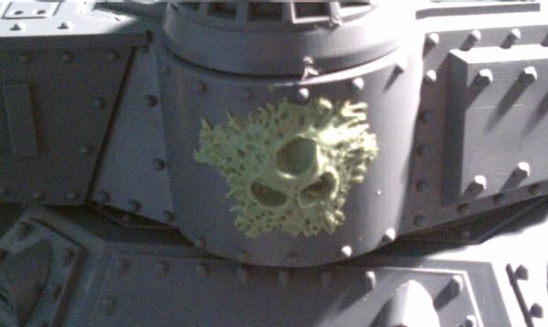 I would feel inclined to add the triplet/triangle of pustules/sores/blisters that usually accompany anything nurgle to numerous locations on the tank.