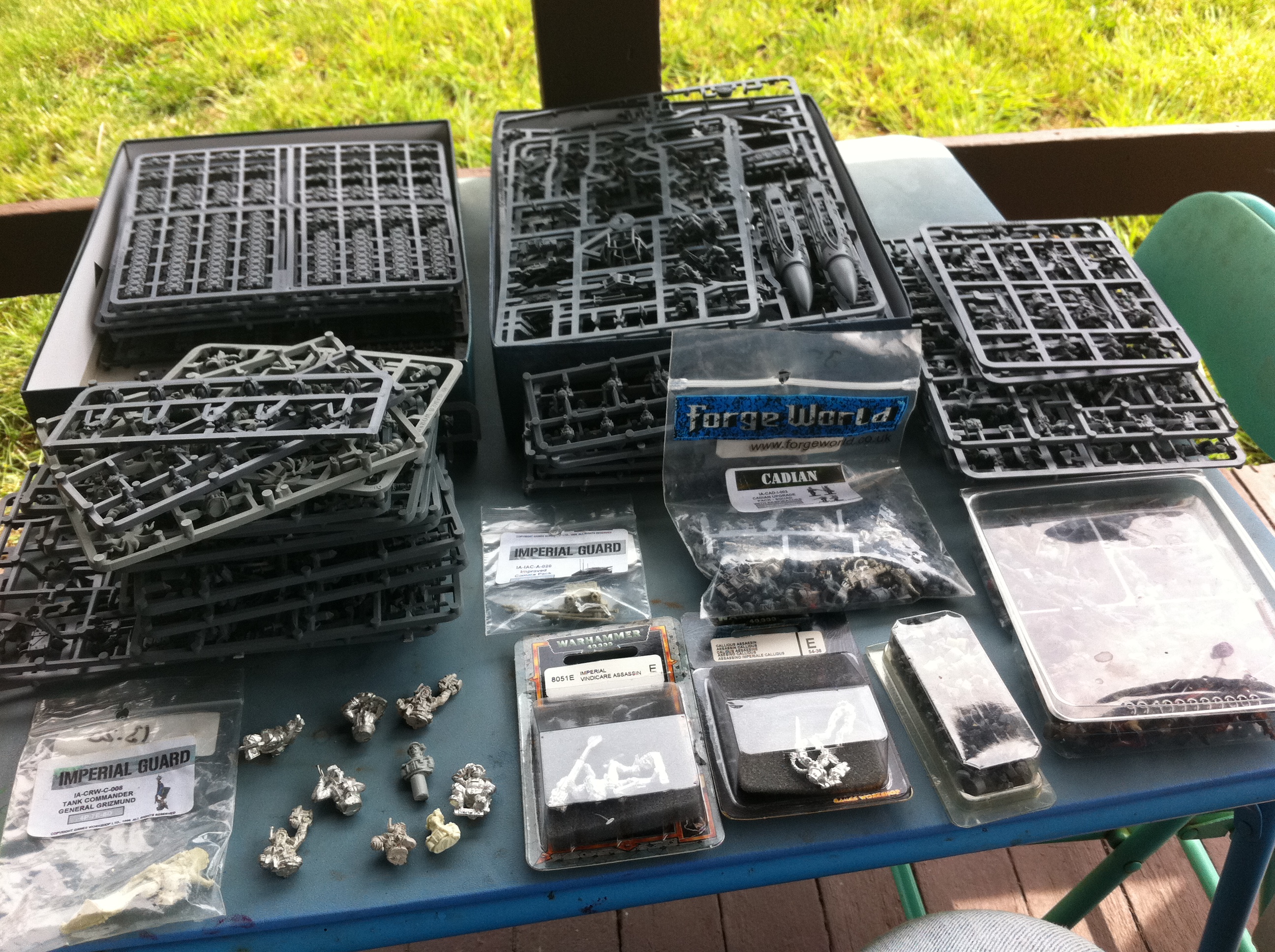 This is a lot of stuff. Easily enough for a mixed force of Cadians and Vostroyans at 1800+ points. Most will need work to complete, but at this price can you really complain!?! Here we go...