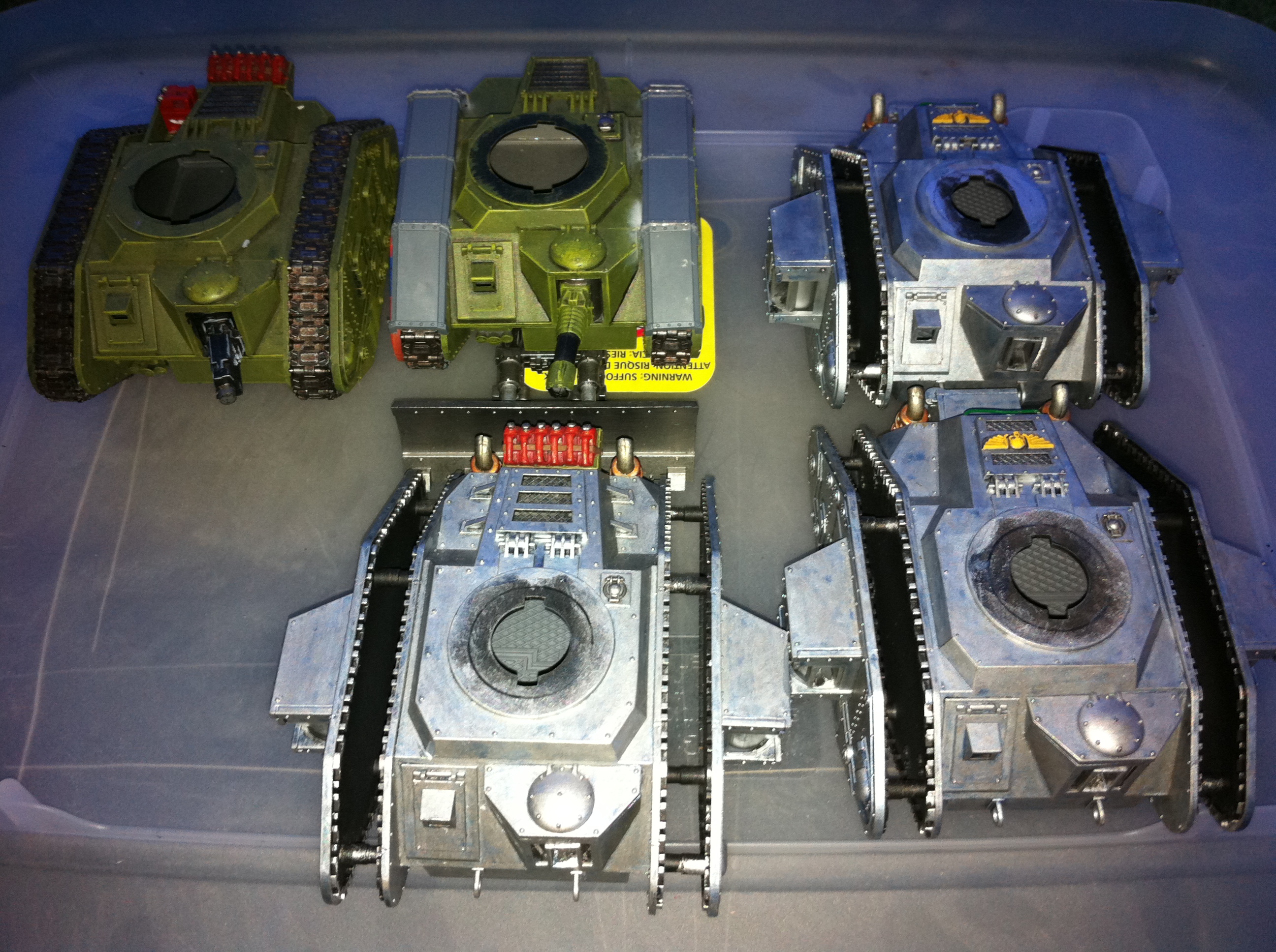6 Chimera Assembled. Need repainted. 2 turrets are converted Predator turrets for Command Vehicles.
