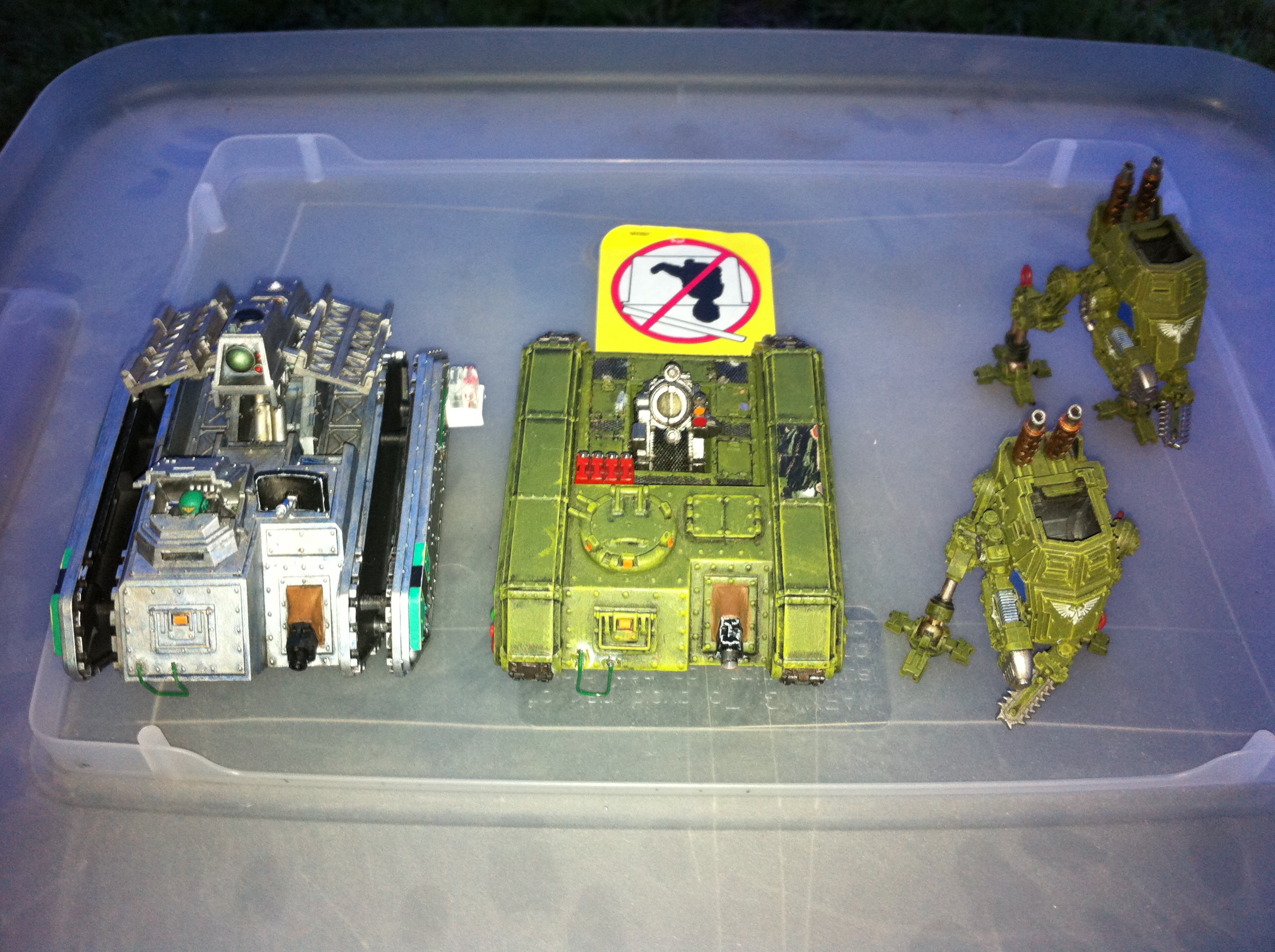 GW. I haven't played a game in about 4 years and haven't painted or modeled anything in well over a year now. No great conspiracy or anything. I just don't have it in me anymore to paint vast squads of identical models and vehicles. I am more into Malifaux and various board games now and don't have the time or inclination to deal with "armies". So I am getting rid of it all. CHEAP. I just want it out of here. Most of it is open or completed and painted or in various states of assembly. ALL of it is in decent condition. I am not offloading stuff that should be in the rubbish bin. I am a decent modeller and painter. My work is clean. I am not, however, a photographer. I do not own the latest 500MP camera with the bazillion times lens attachment. I have an Iphone and its the best I got. So the Pics are as good as they are going to get here. Did I mention that the stuff is cheap!?! The lack of good pics is one reason. I want them gone is the other. The pics are below. I tried to post them in order.