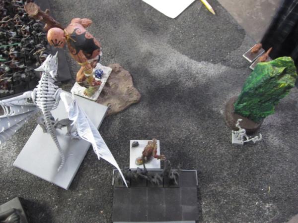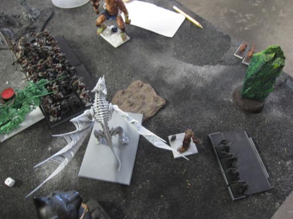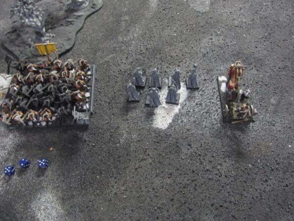 In combat he trade some wounds and my skellies get cut in about half and the ghiest kicks the bucket. My direwolves break and run down the mage along with the other fleeing one and go off the board