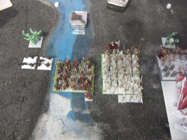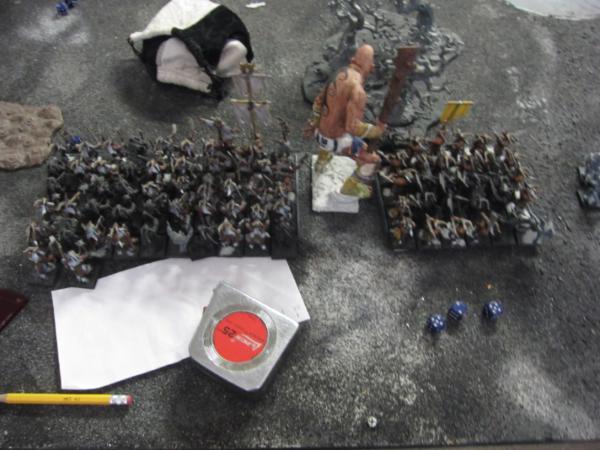 My center kind of pushes forward wary of the Gor horde and needing the charge. Ghouls just try and keep pace with the line