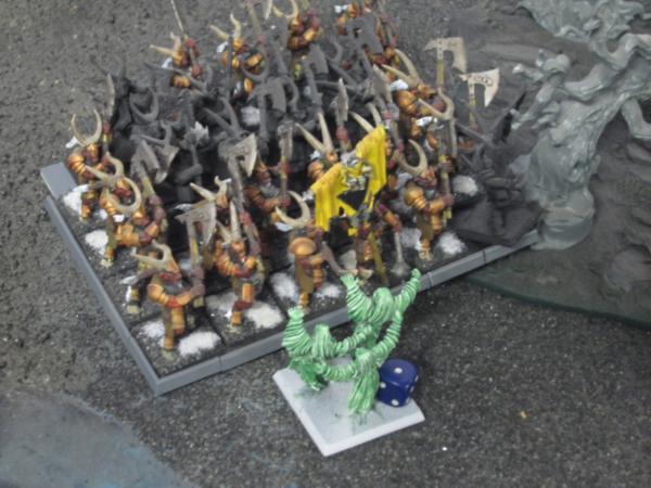 He moves the ghorgon to counter the other terrorghiest and the gor horde pushes a bit farther forward. (He forgot to move the bestigor after their charge but we fixxed that)