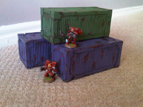 Those look great! They are a little taller than the shipping containers I'm used to, but their scale in regards to each other looks great. (They remind me of boxcars kind of. I like it.) Thank you, incidentally, for posting the pictures! These will make amazing terrain.