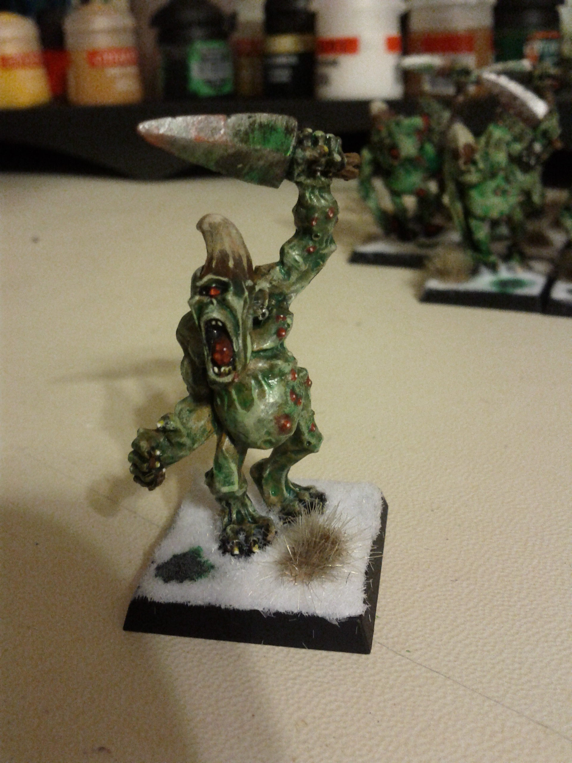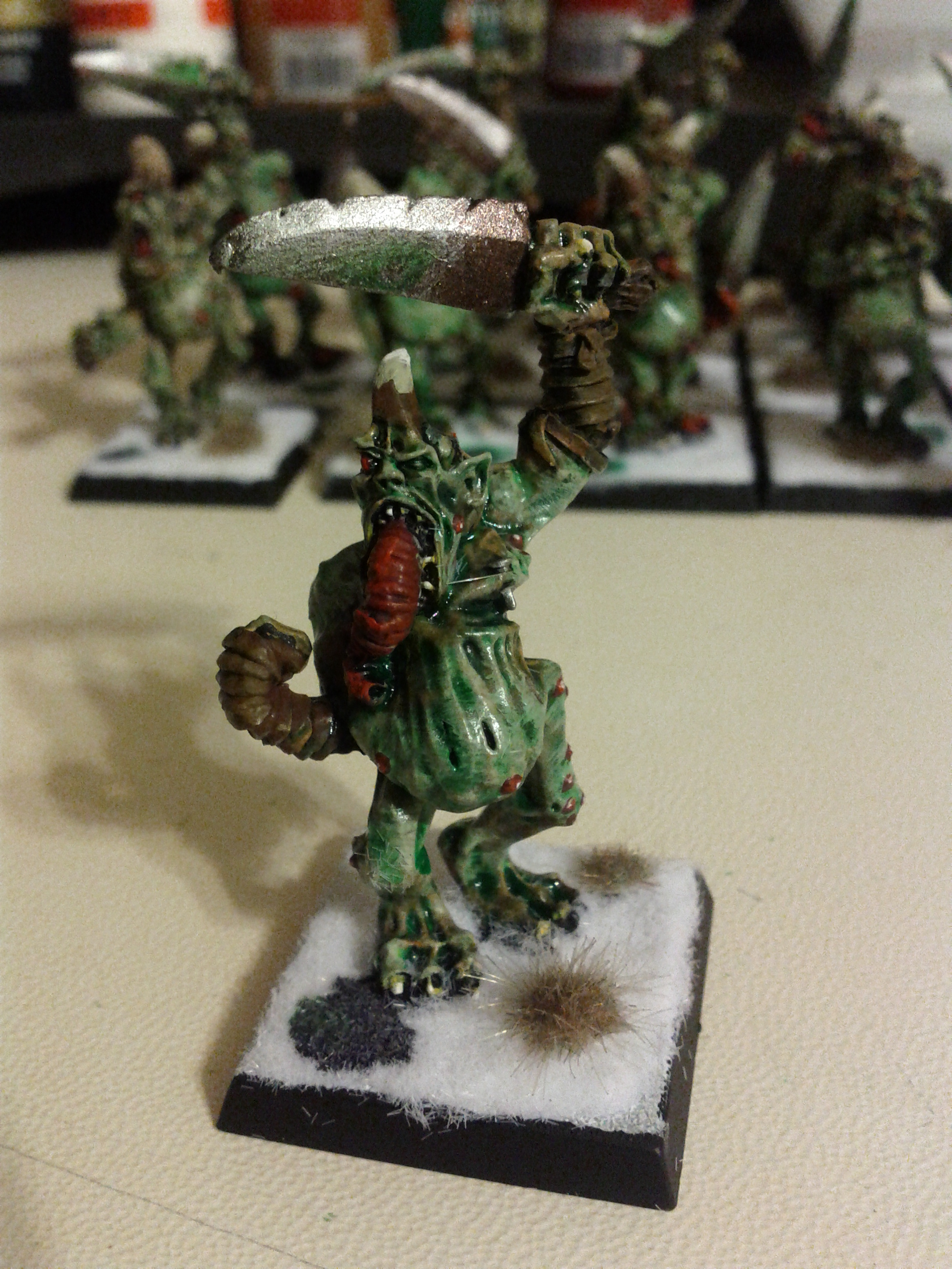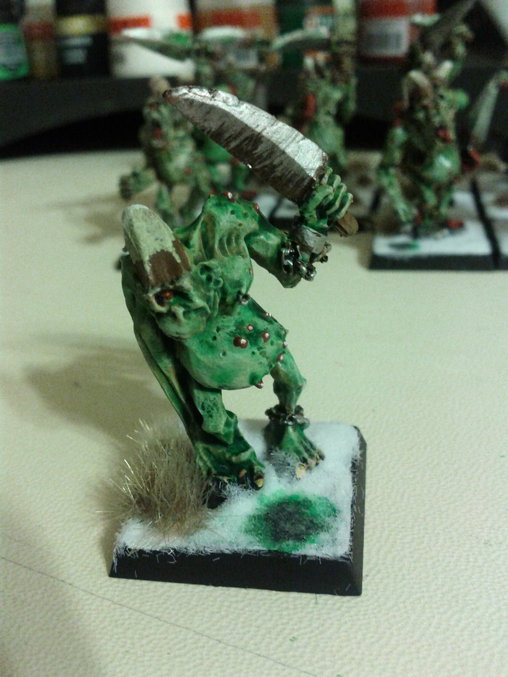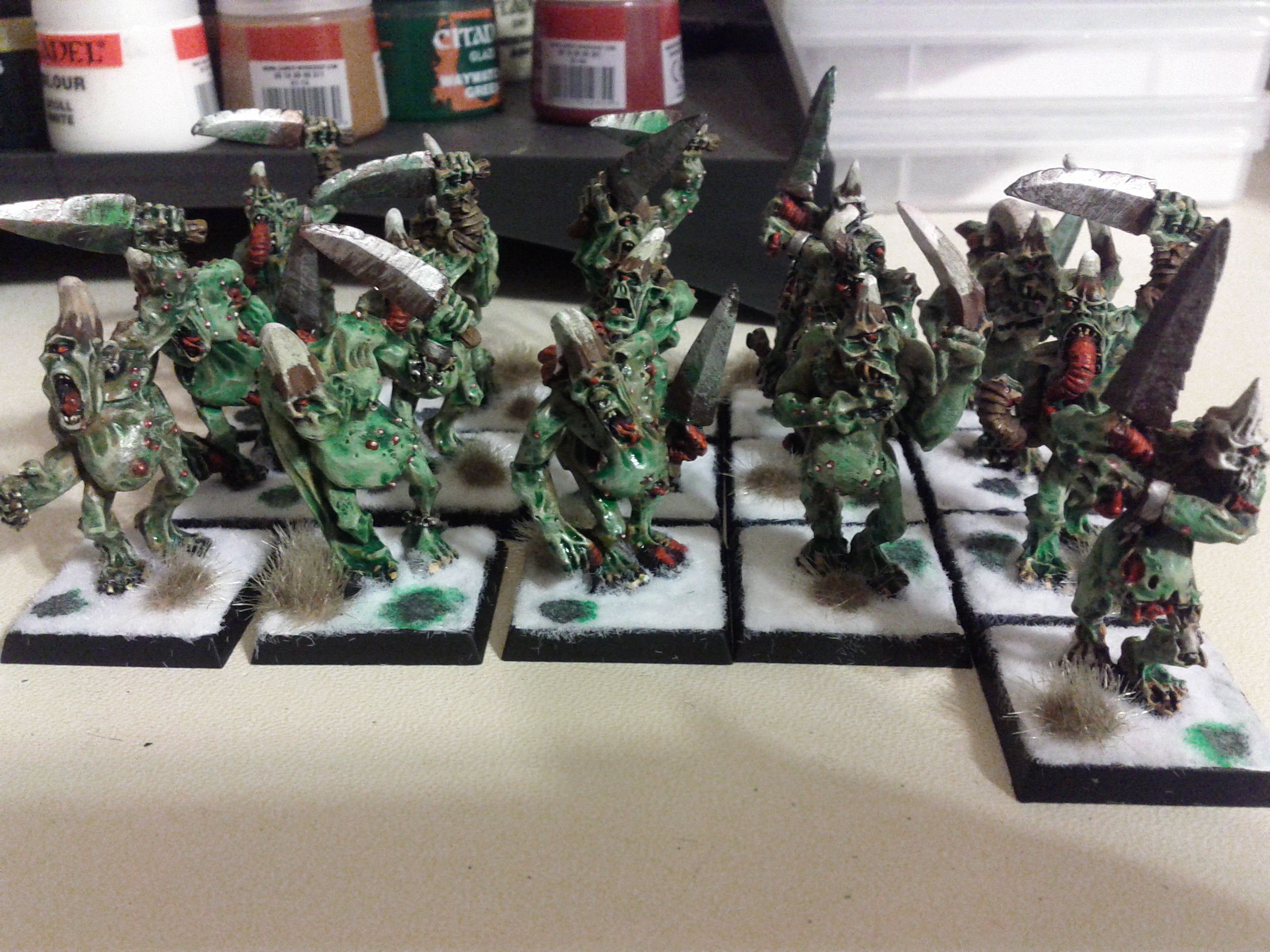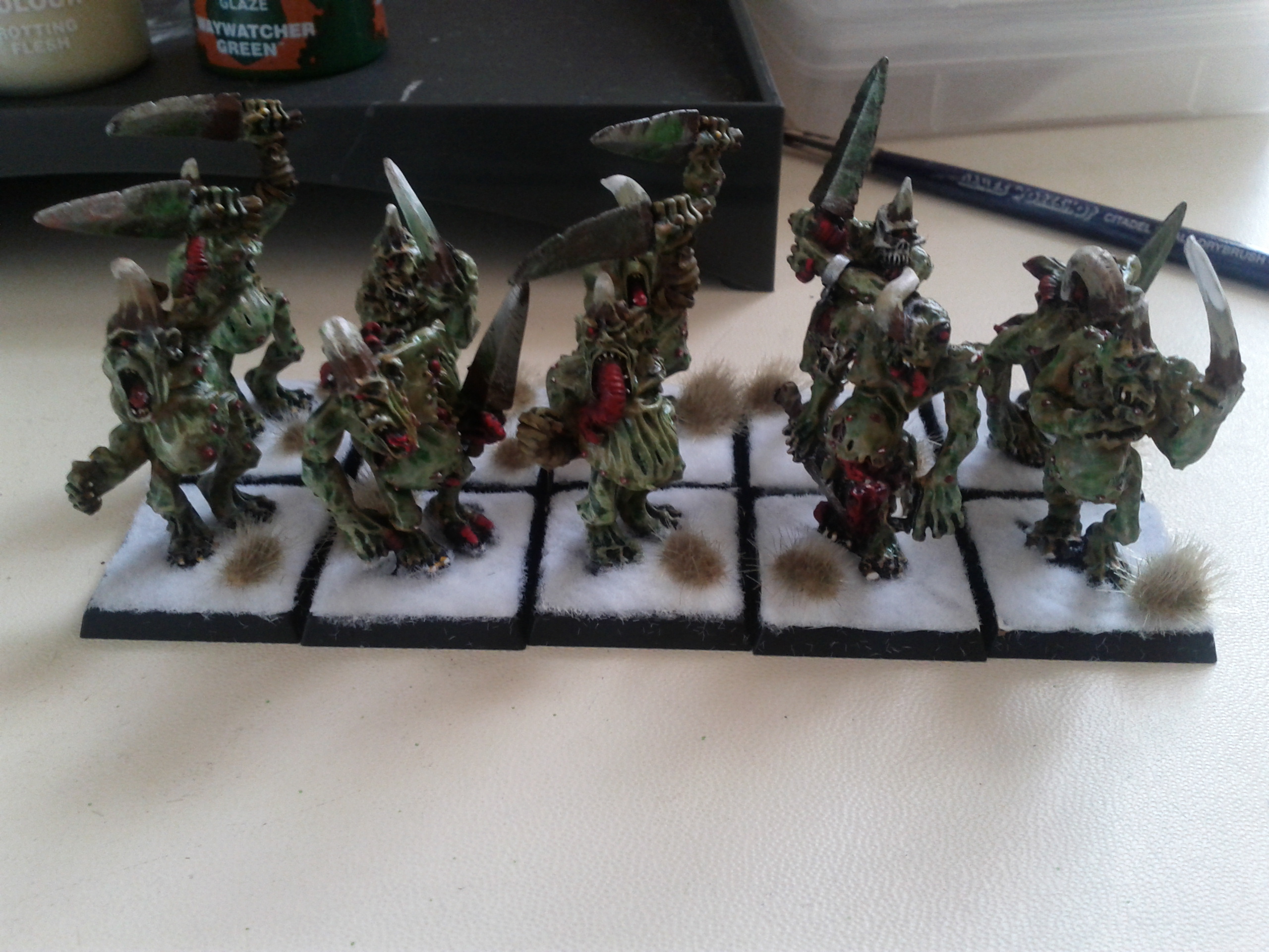 I like the contrast of the bases! And actually the painting looks really nice! I can't wait to see more Nurgly goodness!