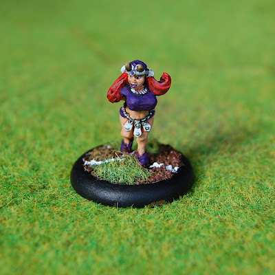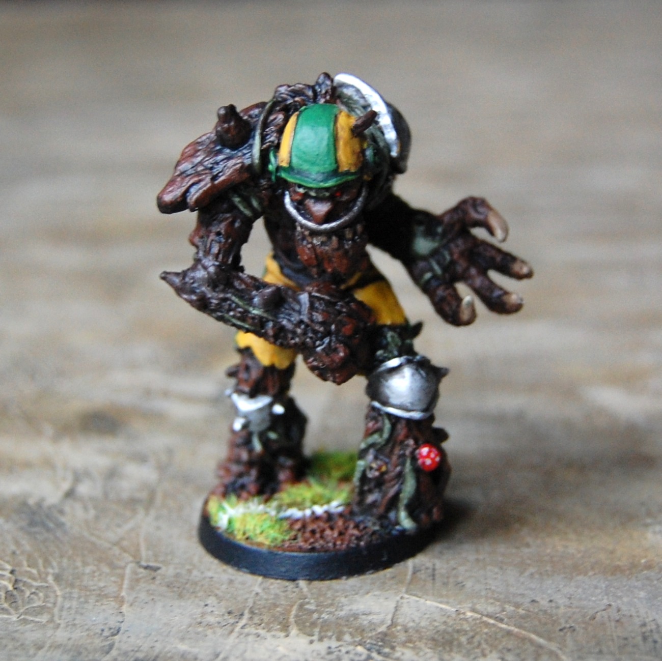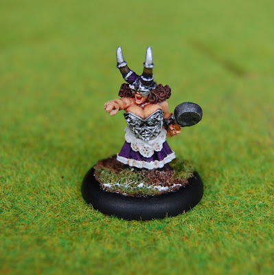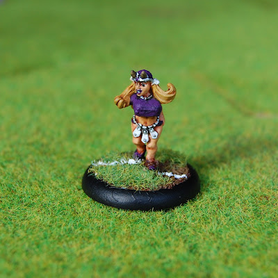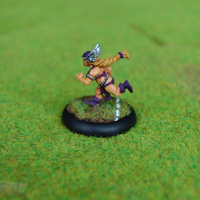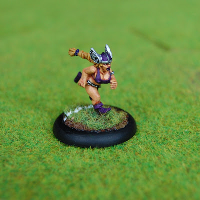 Then we have the Troll Player, a converted Femme Fatale from Reaper Miniature. This was originally a male Ogre figure, with breasts added and the club replaced with a mushroom. Why a mushroom? To remind me about Always Hungry rolls if I ever have to throw the team's goblin player.