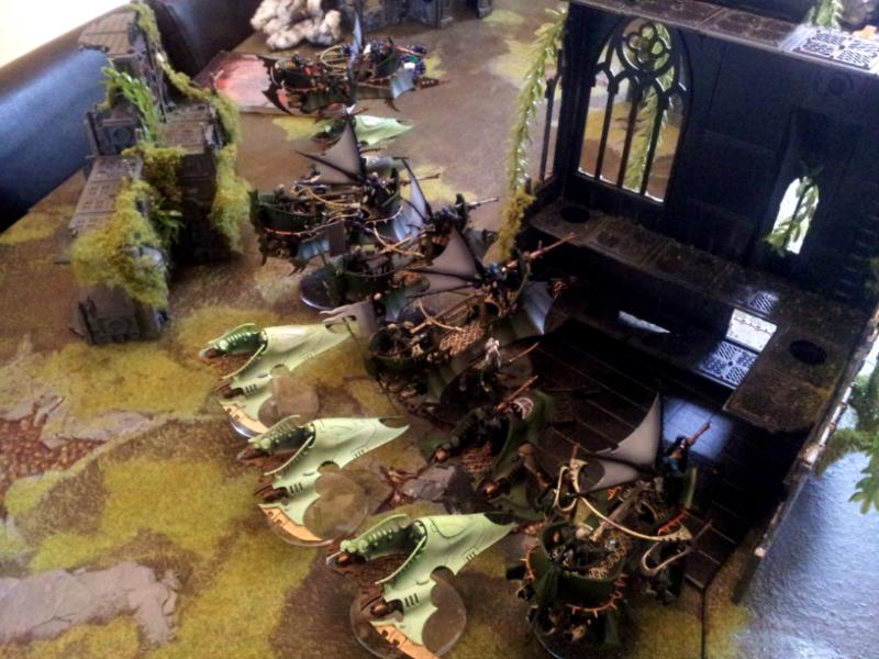 Got a game with Dave aka Blood and Slaughter over the weekend. Dave is a experienced wargamer with a level head and has some interesting thoughts on tactics. He's using D.E, which he hasn't had for long, though he's got 28 games so quite few games to date, so I don't feel too bad about using G.K, plus I did ask if that was cool.