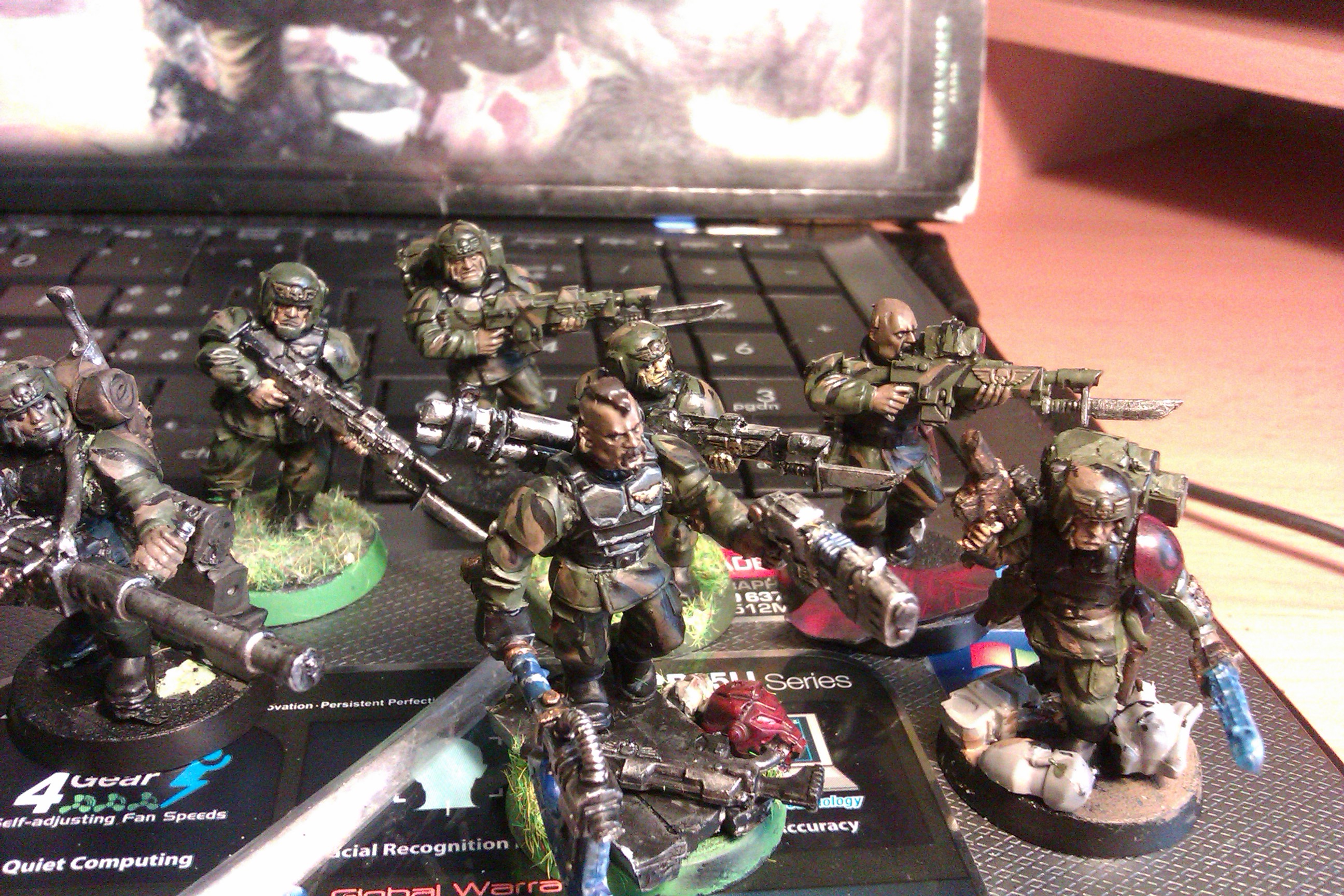 In case it might help, here is a picture of the current scheme I tried right now (which is most heavily WIP) and a group of guardsmen just see how it is supposed to fit in.