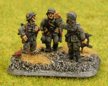 The limited information on the Flames of War website consists of a picture of Wayne's Croat command team, on the "Evan’s German Army Painting Guide" page (see picture below). I believe his force is from the 369th (Croatian) Reinforced Infantry Regiment, which fought in Russia and was basically wiped out by the end of the Mid-War period. The remaining troops formed the 369th (Croatian) Infantry Division (Wehrmacht). Wayne's figures have their checkerboard badges on the left shoulder, while the later 'legionnaire' (Late War) divisions had the shoulder badges on the right side.