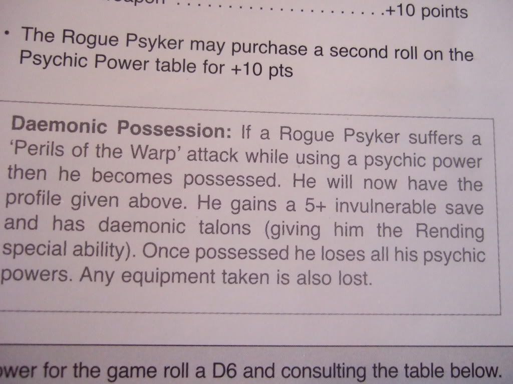Perils of the warp is the result of rolling either a 1,1 or a 6,6 for your psychic test. If you roll a 1,1 your power still activates however you take a wound with no armour saves allowed, and any successful invulnerable saves must be re rolled. 6,6 your power fails and you Automatically Appended Next Post: *take a wound with no armour save, any invulnerable may be taken but must be rerolled if passed