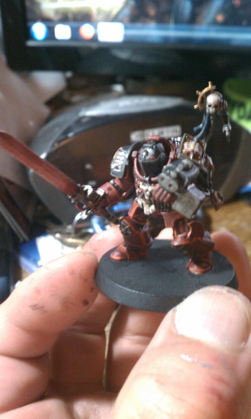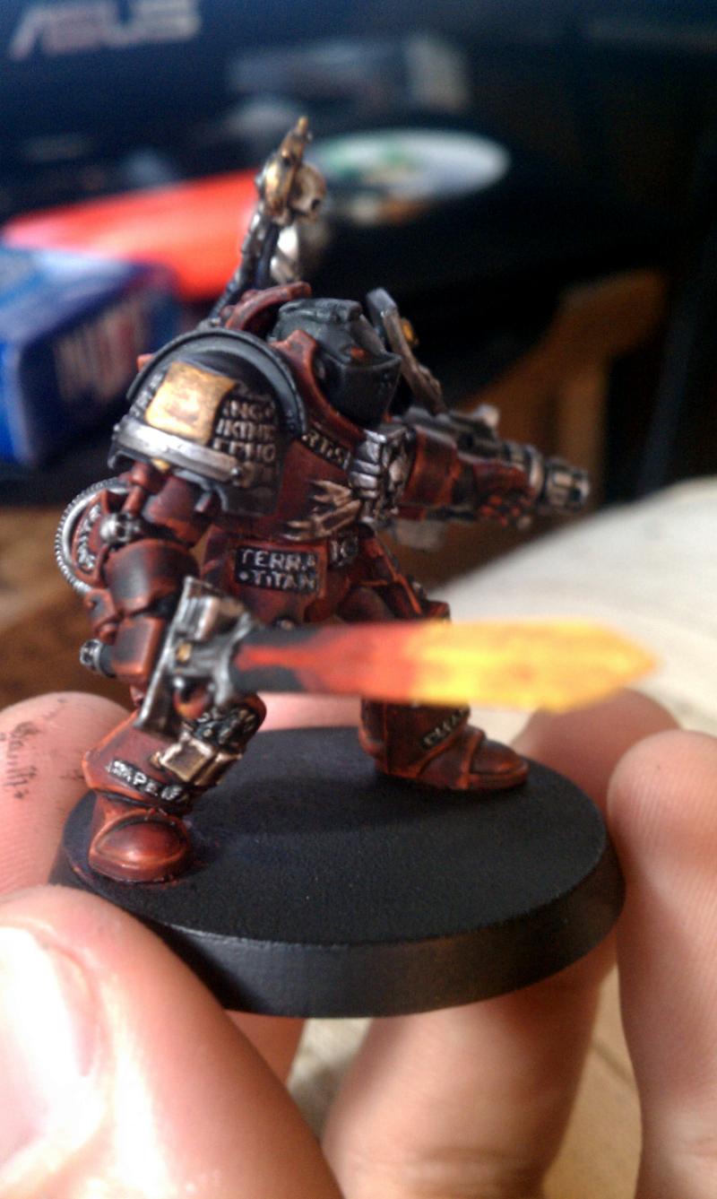 @Imperial Monkey I chose a red color for the sword because normally GKs force weapons are blue, and I was going for something very opposite. In addition the Red/Orange/Yellow gives it a kind of khorne blood letter weapon look.