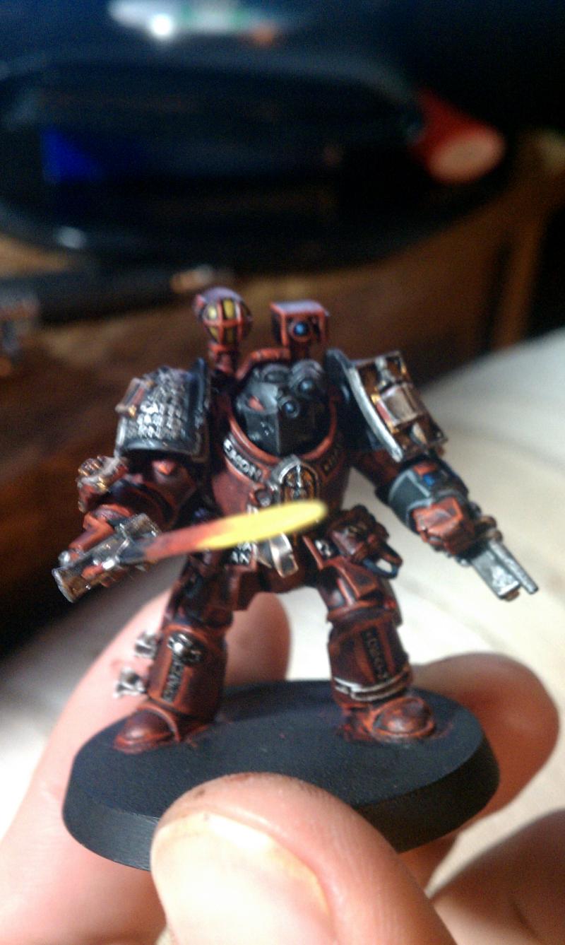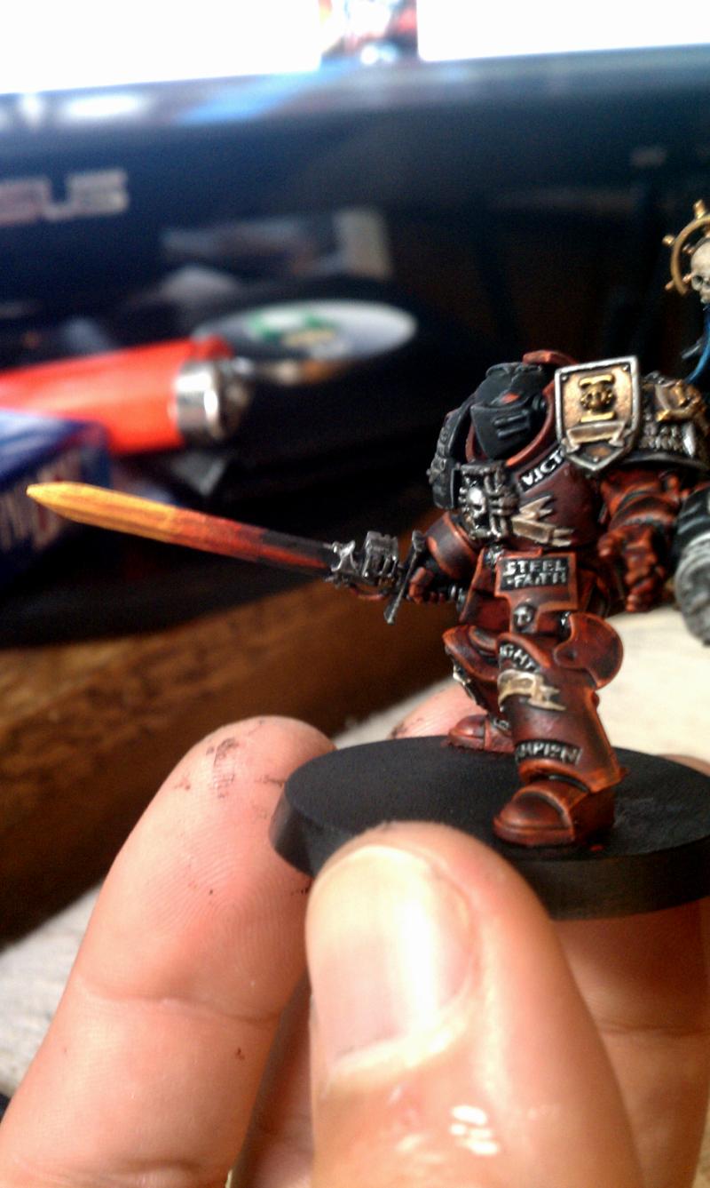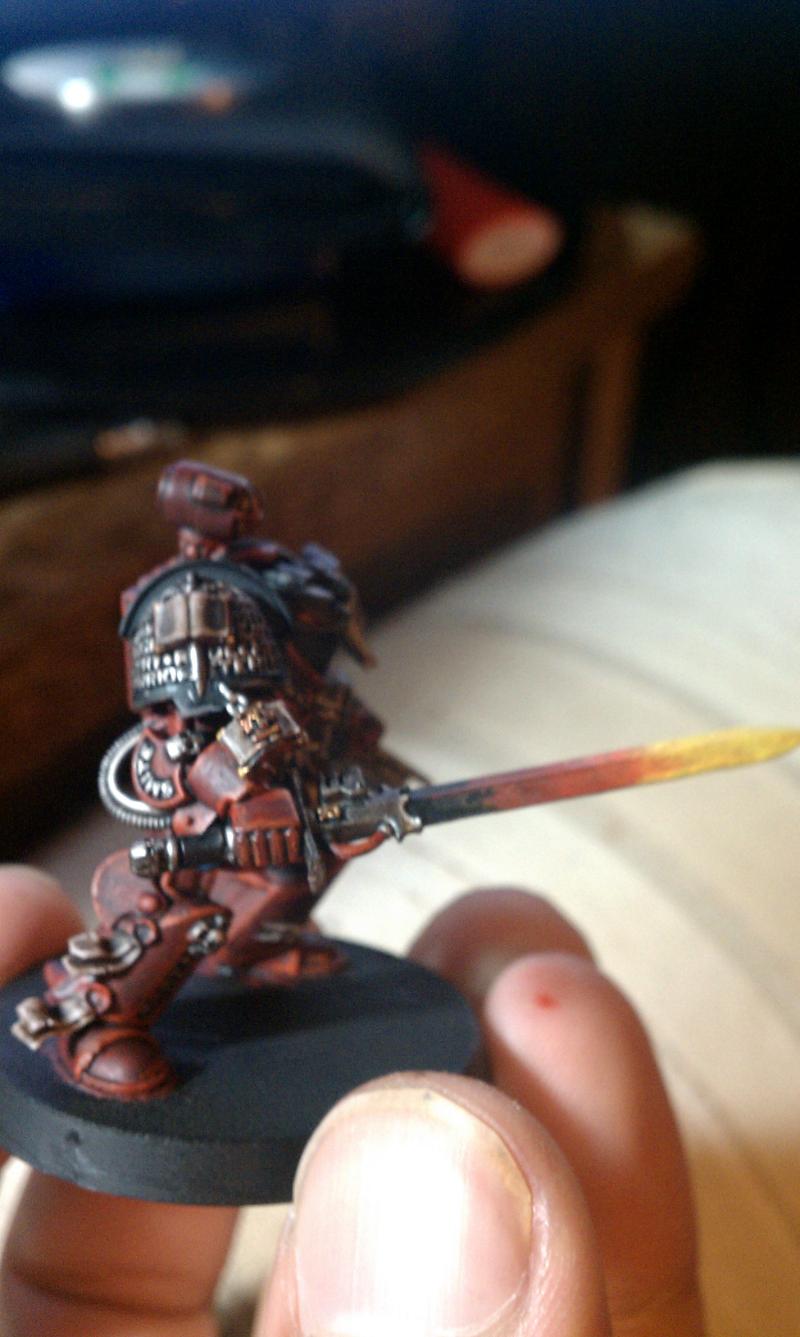 Thanks for the input. With the sword I did a lot of drybrushing layers with reds into orange and then one of white. This is similar to the method I used on my normal GKs, though it didn't seem to be as effective. I'll have to look up some lightning effects tutorials and probably use a red wash to see if I can get a better effect.