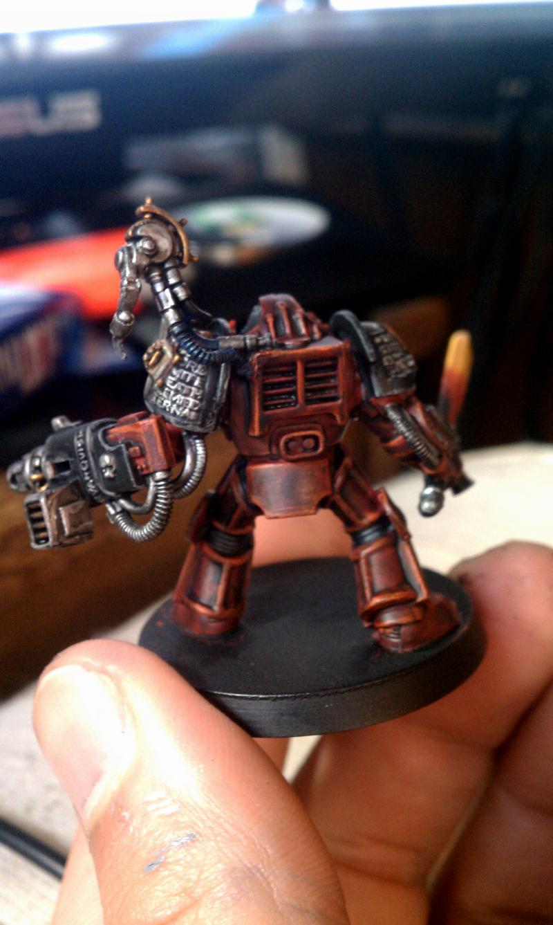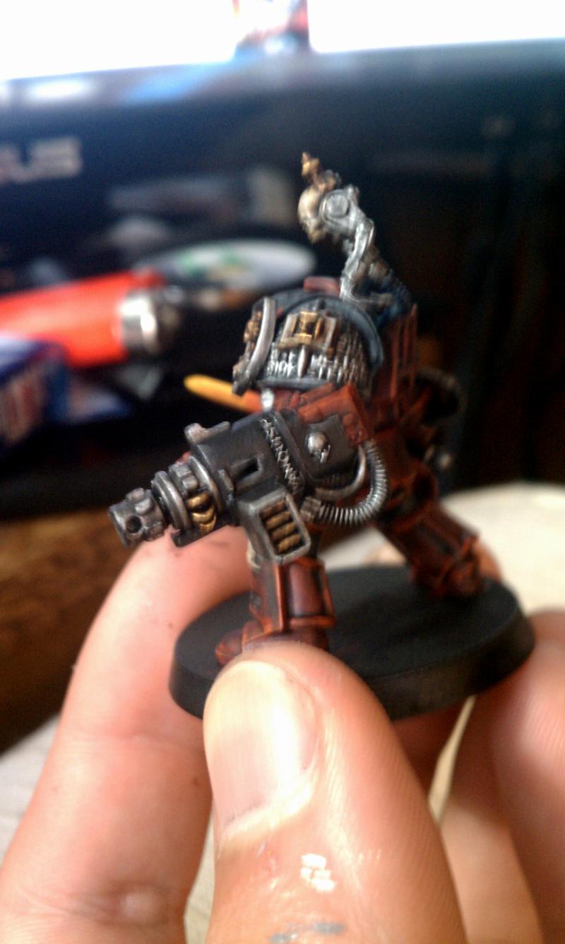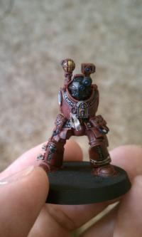 This is different for me too. Normally with my standard GKs I prime them black and do heavy drybrushings of boltgun, chainmail, and mithril. With these I'm actually using a brush topaint every inch of the model and draw the highlights on, its more time consuming and a steady hand is required but the effect is still nice.