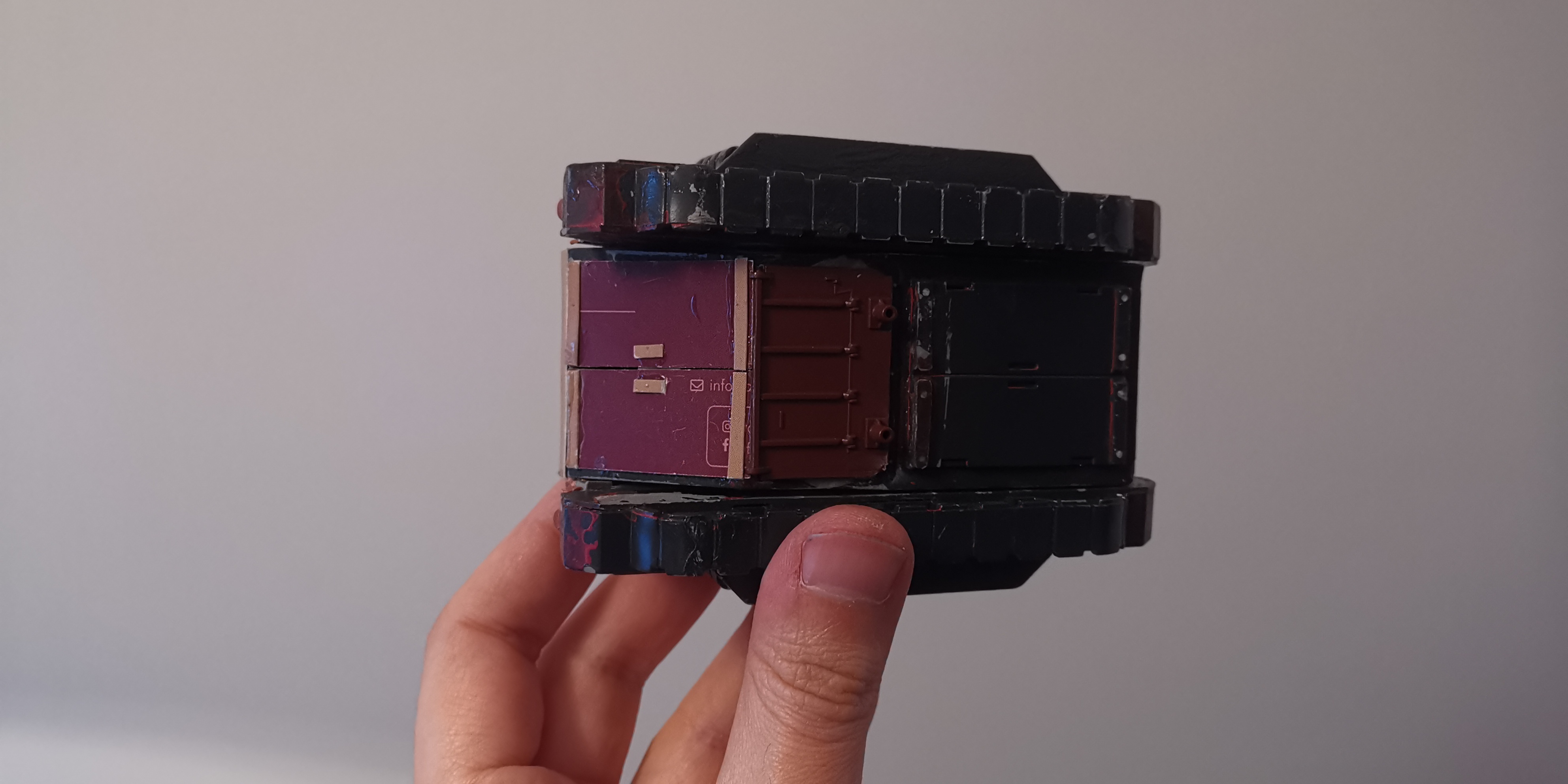 Long time no see, I was very busy. Recently, I found a very promising bit of packaging and I decided to finally make some terrain. Here is a step by step gallery of the project. First, composition. Not a lot of work here, the packaging was already looking like a hangar, I simply cut half of it with a knife and glue it together with toothpicks and school glue.