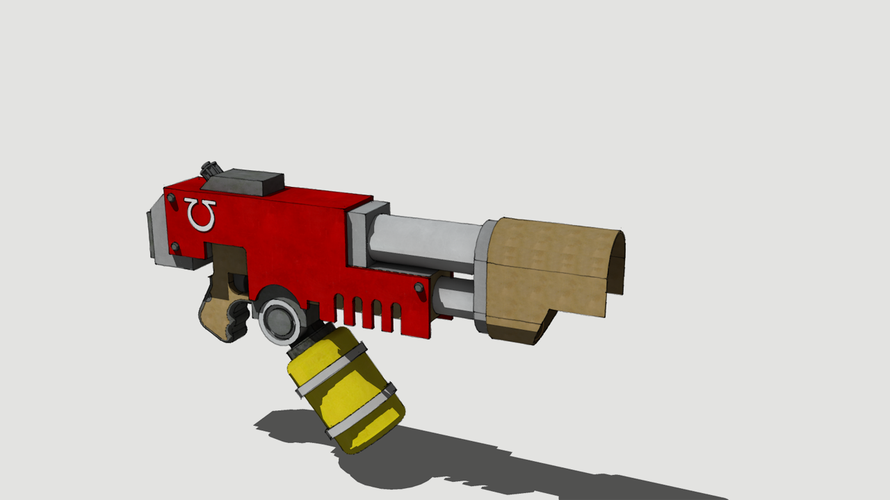 After a good half hour of resizing and deleting parts from the bolter I decided it was better to start from scratch. In this case scratch was a 2D graphic of a basic flamer!