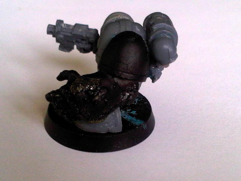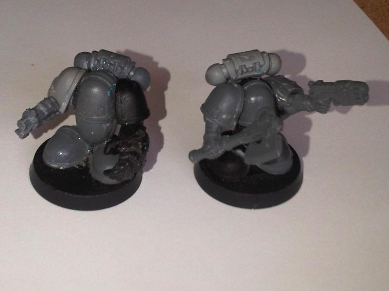 The first models I'm showing are two Mini marines. Back in 2010 someone posted a picture of a space marine made out of shoulder pads, needless to say the "chibi marines" were beloved.