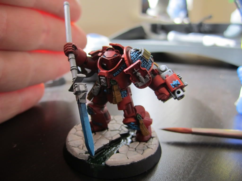 so this is the start of my painting blog, ive been painting for years now and have a new project starting its the red knights, essentaly grey knights but red. the scheme is from white dwarf where the eavy metal teamm did a stage by stage for the space hulk captin. The paints have changed since then so i will be using gw new colours to do the job instead, oh also its in nmn too. I wont makethis post to long as im new to the forum