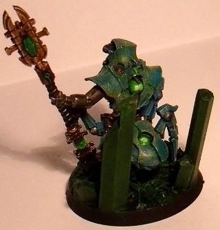 I see a lot of marble and gold effects but prefer a darker palette. my necron army is a dark bronze colour and I hit upon the idea of giving my overlord black granite trim to his armour.