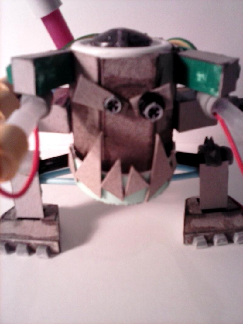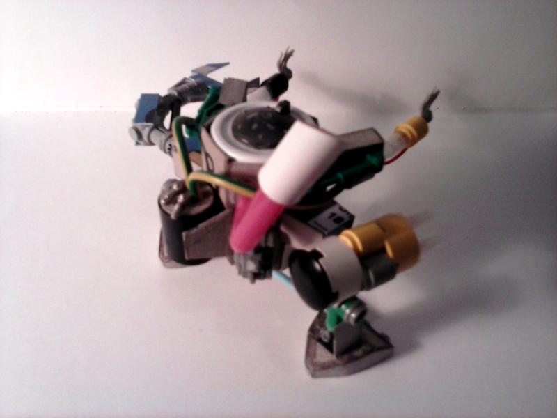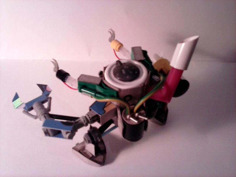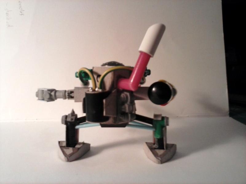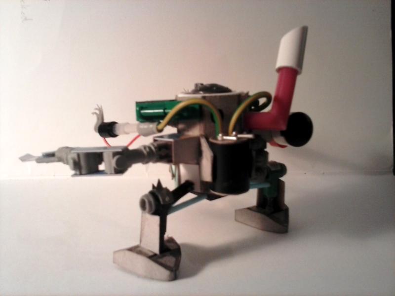 It´s made from all sorts of random bits such as a vitamin tube for the torso, some lego bits, card and earpins... a proper heap of junk in an orky fashion