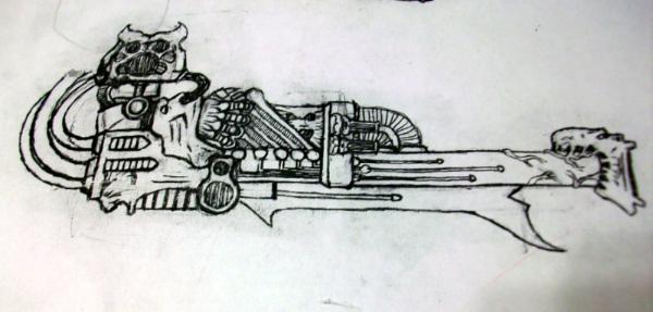 Dark-Warrior-Art wrote:OK! so here is one of the proposed weapons for the Cult Terminators of Slaanesh! I kinda went overboard with the concepts, and I created the gun in a drawing for first, then made it with GS plasticard, and guitar string. Lemme know what you think of the gun! Also, I made the body of one of them. I was gonna name them the "Dark Satyrs of Slaanesh". Feedback would be greatly appreciated!