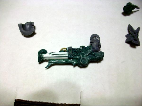 OK! so here is one of the proposed weapons for the Cult Terminators of Slaanesh! I kinda went overboard with the concepts, and I created the gun in a drawing for first, then made it with GS plasticard, and guitar string. Lemme know what you think of the gun! Also, I made the body of one of them. I was gonna name them the "Dark Satyrs of Slaanesh". Feedback would be greatly appreciated!