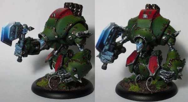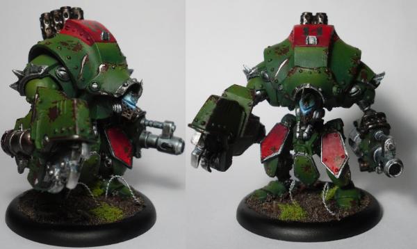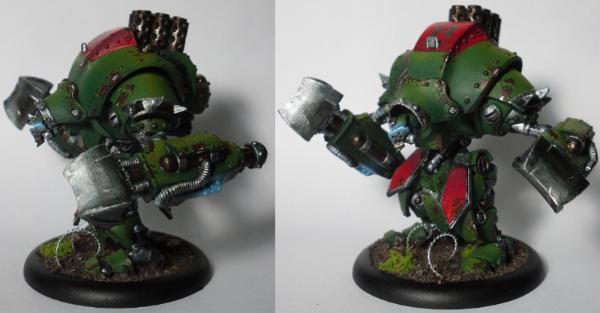 I really like the color modulation on the armor plates. Considering the weapon/OSL effects, I'm assuming it's airbrushed? Regardless, it's quite effective, as is the chipping and underlying russet finish. Nice work!