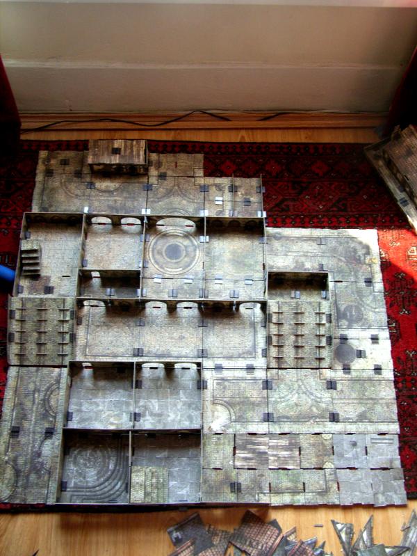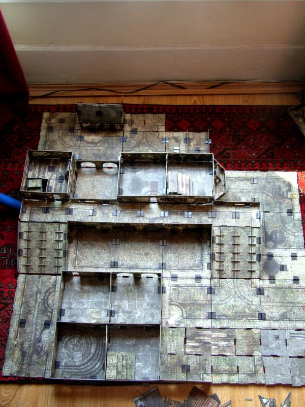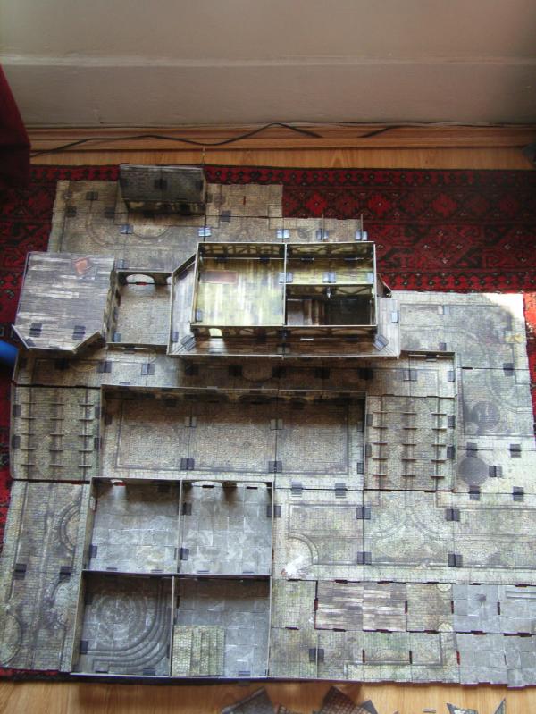 a floor coverage of about seven square feet from the two sets. This included a raised section and two complete multi-storey buildings as well as the ground floor of a large building. I had enough tiles left to probably push another square foot of tiles but I'd essentially run out of connectors. So